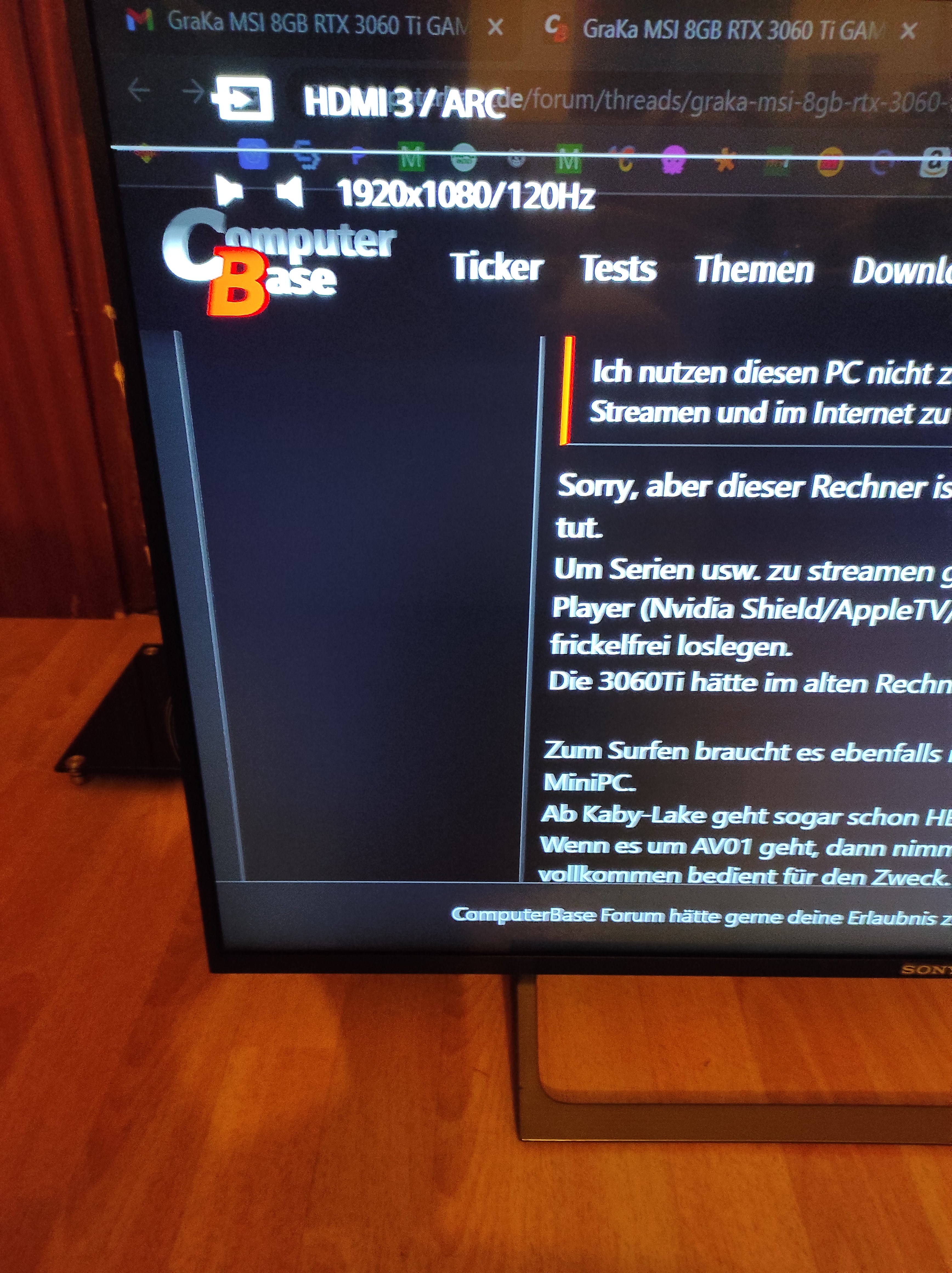 Ich habe bereits versucht über die Integrierte Grafikeinheit der AMD CPU alles laufen zu lassen aber das Problem besteht weiterhin. Grafikkarten Treiber mehrere male Deinstalliert und wieder Installiert. BIOS-optimierten Standardwerte geladen hat nichts gebracht. Clean Install von Win 11 Pro versucht. Ältere Treiber für die NVIDIA 3060 TI sonst fällt mir gerade nichts mehr ein oh doch alles gesäubert aber es war ja ohne hin nicht dreckig da alles Neu ist mehr oder weniger. Maus und Tastatur gewechselt auch bei Neu. Auch natürlich in der Nvidia Einstellungen 4:4:4 auf Voll oder begrenzt also da hab ich alles durch Probiert von 800x600 Auflösung hoch bis auf 4096 x 2160 und das auch wirklich alles auf sämtlichen mir zur Verfügung stehenden Hz Zahlen. RGB Voll begrenzt und so weiter am TV selbst auch alles versucht Gaming Mode On und Off geringen Latenz Motion Pro Mittel Hoch und und und. und by the Way ich besitze keine weitere Grafikkarte um die mal zu Testen.