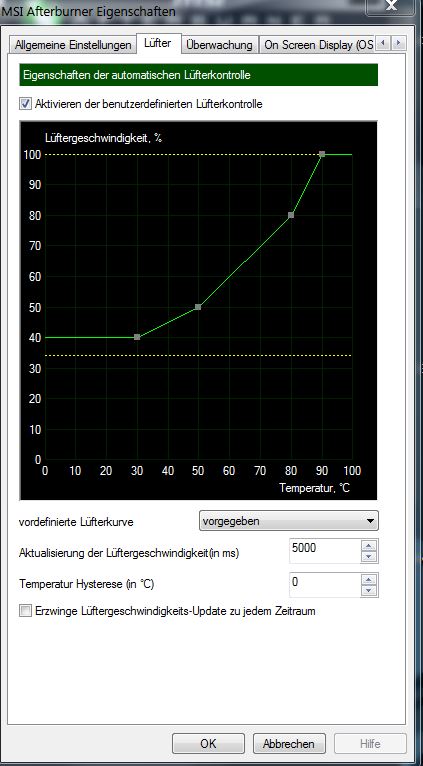 Mit Tools wie MSI Afterburner oder EVGA Precision X kann man eigene Lüfterkurven für Grafikkarten definieren, bei welcher Temperatur die Lüfter auf x% laufen sollen.