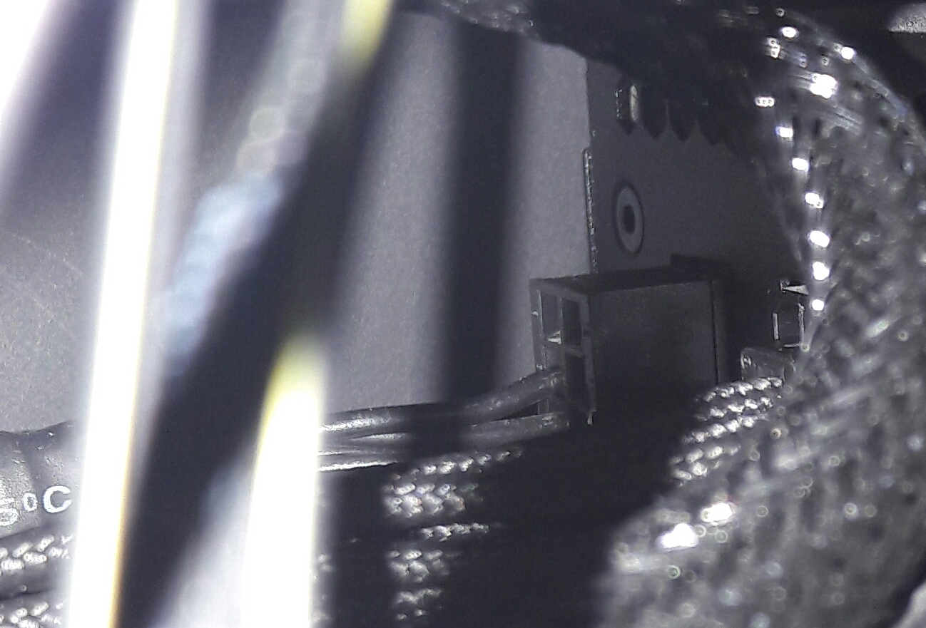 Ich habe bemerkt das der Stecker des Stromkabels meiner Grafikkarte am NT einen kleinen Schlitz hat bzw nicht zu 100% sitzt. Ich habe mal Fitos gemacht auf denen der Schlitz seitlich am Stecker zu sehen ist.