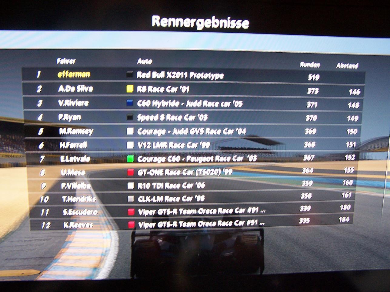Ca. 8 Minuten ein R8 Race Car.efferman schrieb:welche rundenzeit fahren die lmps bei den 24h nordschleife?