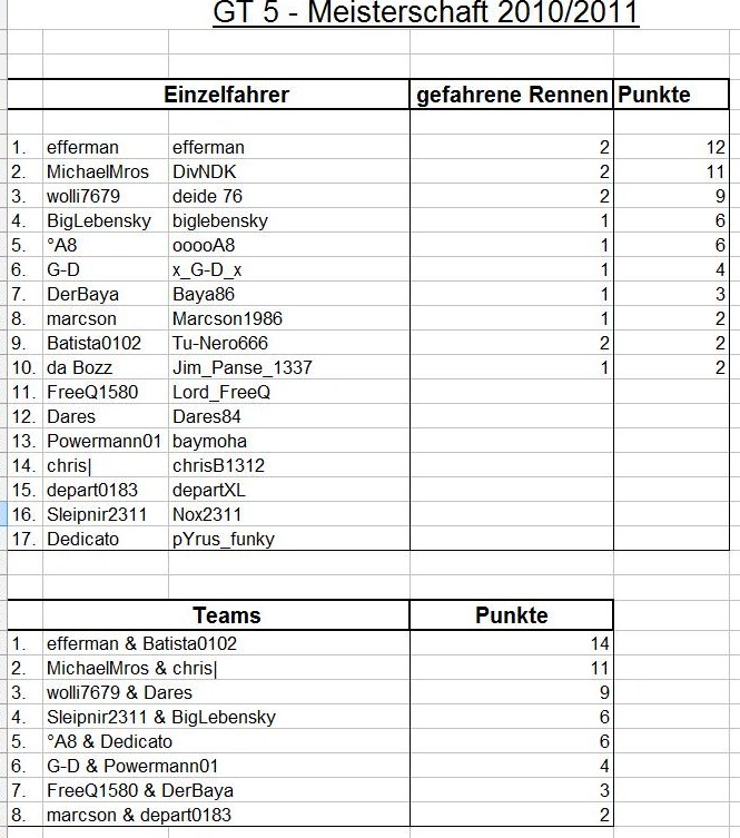 Gran Turismo 5 - Meisterschaft 2010/2011