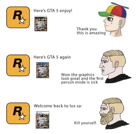 Ich hätte mal mehr bock auf GTA VI, die alten teile habe ich schon zu oft gespielt und kann die daher auch nicht mehr sehen.