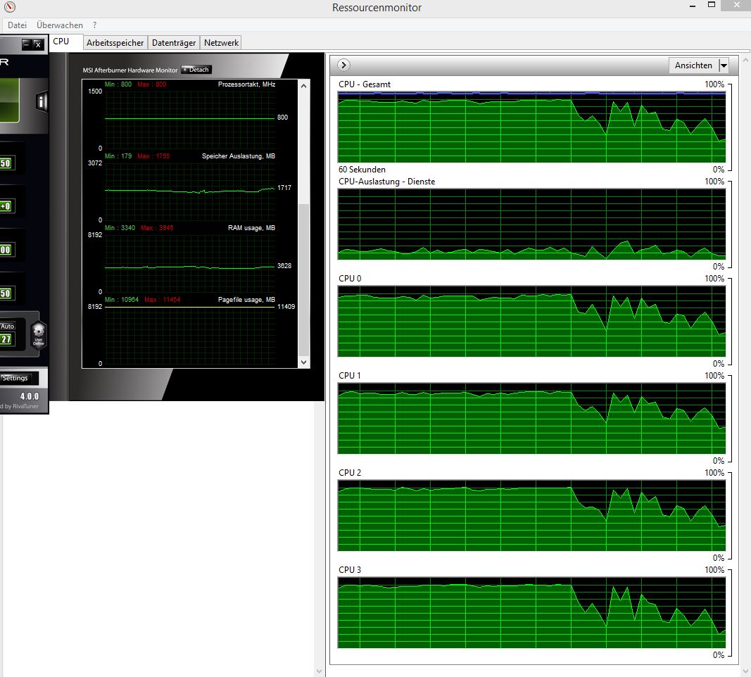 ich habe heute festgestellt, dass GTA V bei einer geringen CPU Last enorme Probleme hat. Nachdem ich ein Videoupload auf YouTube gestartet habe und etwas rumgefahren bin kam es zu üblen Nachladeproblemen, wie matschige Straßentexturen oder fehlende Häuser oder andere Objekte. Die Vram-Auslastung beträgt gerade mal 2400 MB und die CPU ist auf 100%, was damit aber eigentlich wenig zu tun haben dürfte.