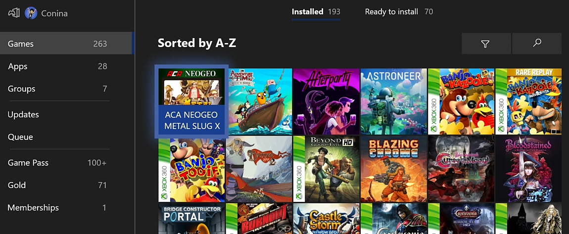 Man kann allerdings nicht sämtliche Spiele mit Verfallsdatum ausblenden lassen, zudem sind installierte Retailspiele und digitale Käufe vermischt. Und natürlich fehlen sämtliche mit der XBO inkompatiblen 360-Spiele. PC-Spiele, die man per Microsoft-Store gekauft oder per GamePass geliehen hat, werden auf der Konsole natürlich auch nicht angezeigt.