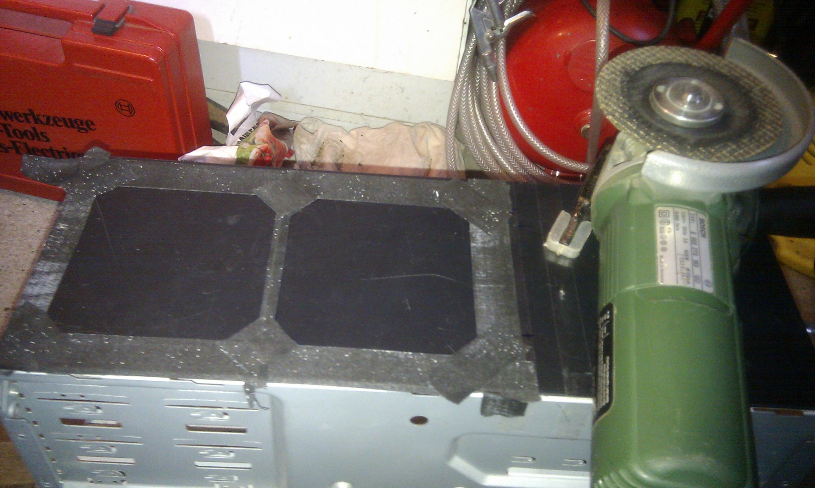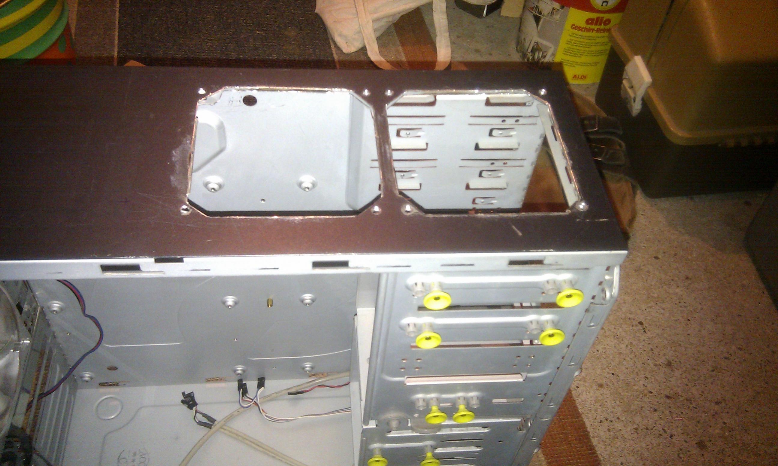 Hab vom meiner Wakü und seiner Entstehung noch ein paar Bilder angefügt, nicht schön aber seltsam und sie macht was sie soll (hat den PC von Staubsauger Lautstärke leises Rauschen gebracht).