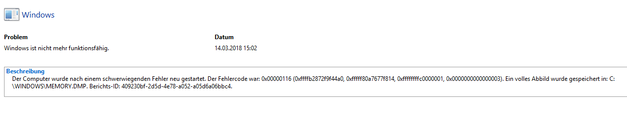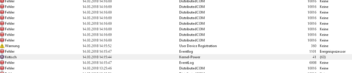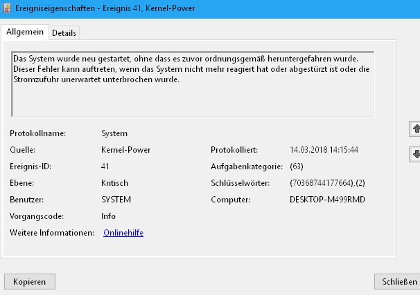 Ereignissanzeige zeigt erst nach dem Fehler was an. war ca.14.15. Der kritische ist der Reset würd ich sagen.