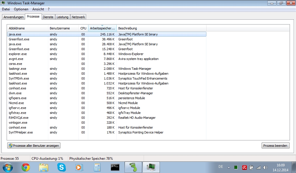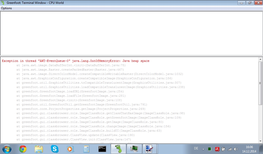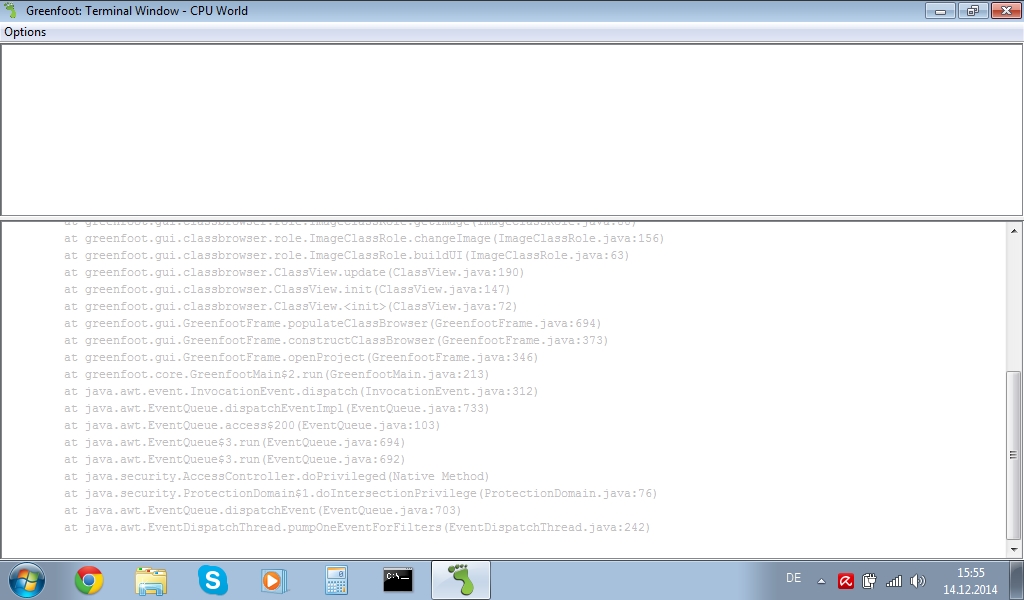 Ich habe in den Screen Shots diese Fehlermeldung, die laufenden Prozesse, eine Firewall Meldung und den greenfoot-debuglog.txt angegeben.