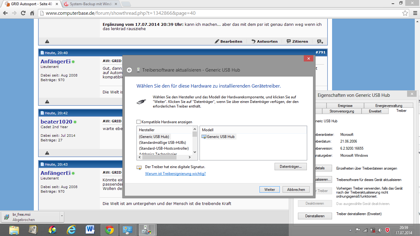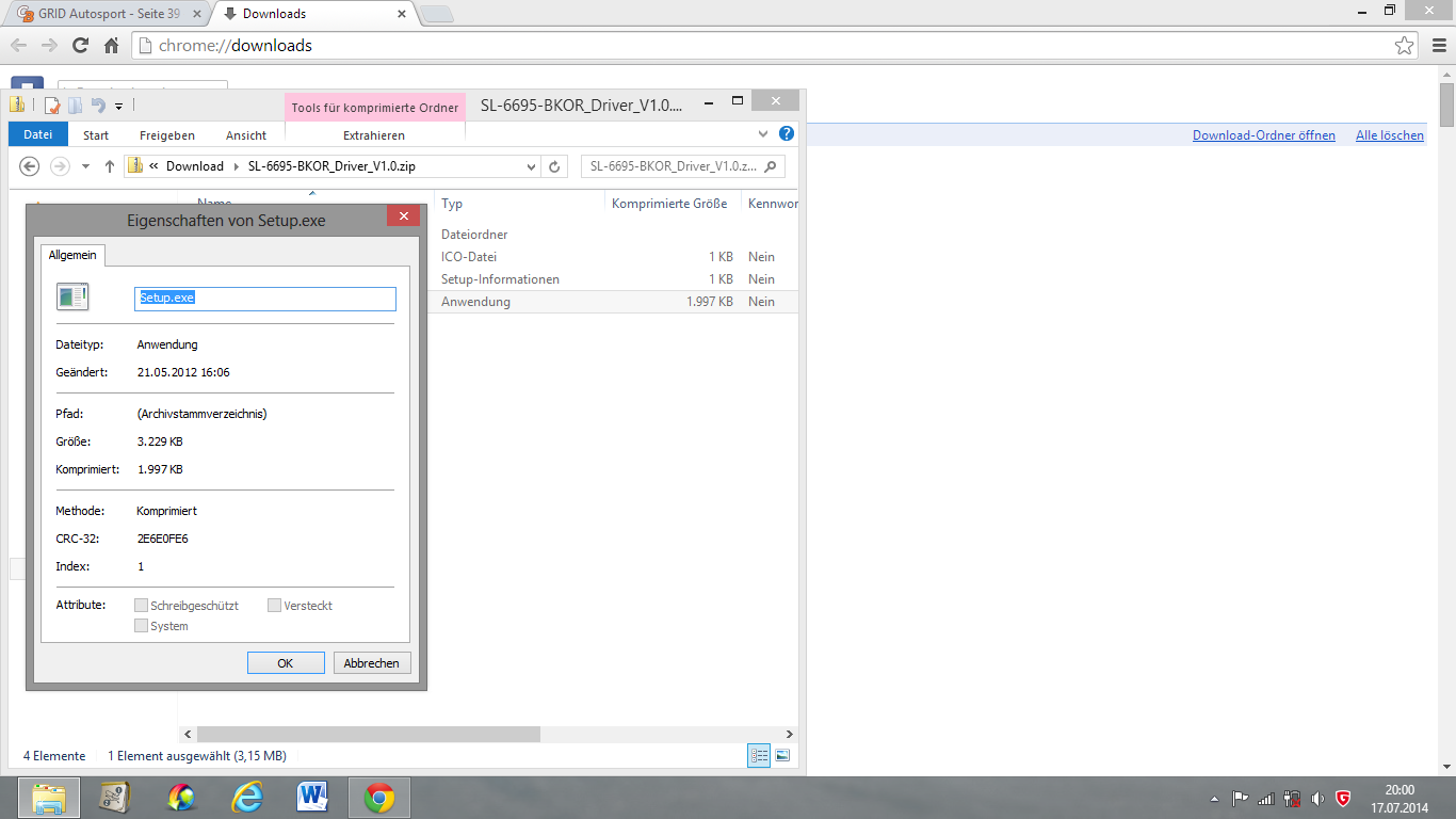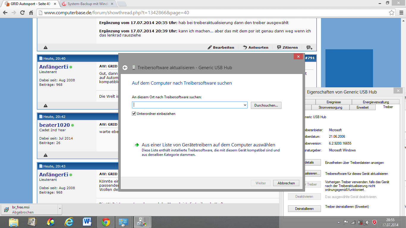 Der Treiber müsste ja installiert sein. Du könntest allerdings auch oben auf Durchsuchen gehen und den die Datei, also den Treiber auswählen. Zum Treiber hin navigieren und auswählen. Aber nicht die zip-Datei, sonder die entpackte