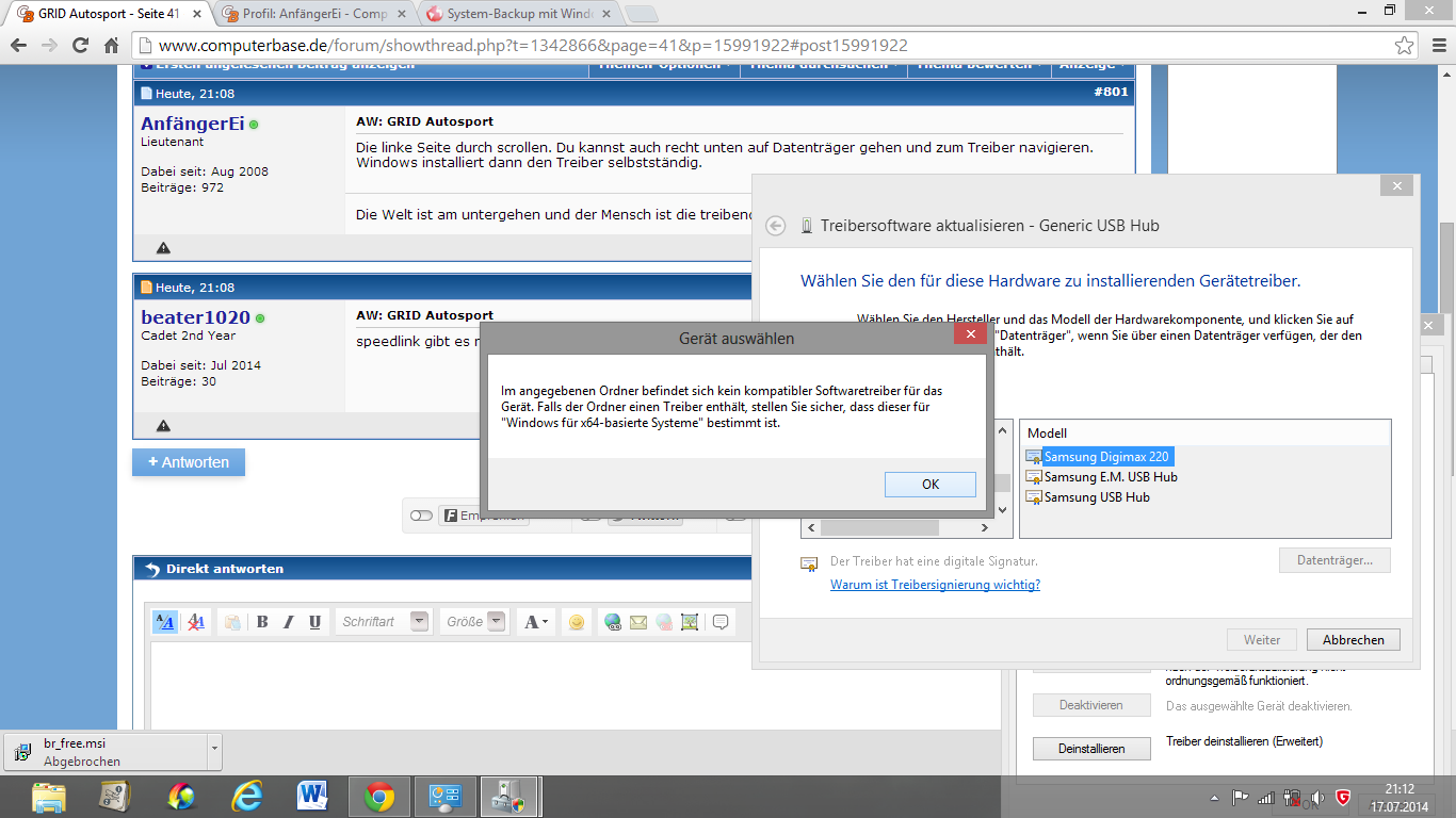 Die linke Seite durch scrollen. Du kannst auch recht unten auf Datenträger gehen und zum Treiber navigieren. Windows installiert dann den Treiber selbstständig.