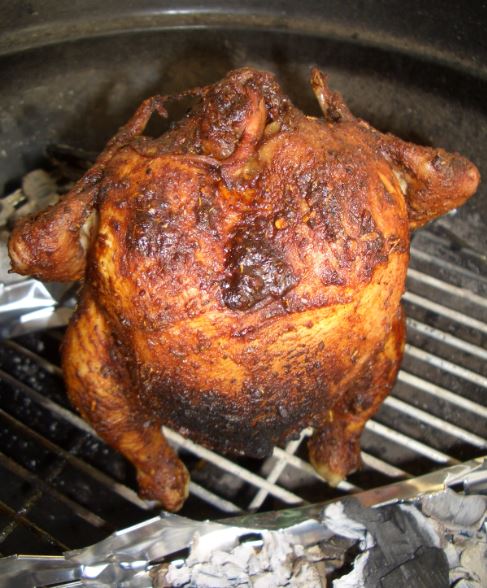 Liegt bzw steht in diesem Moment gerade auf dem Grill: Ganzes Bierdosen Hähnchen