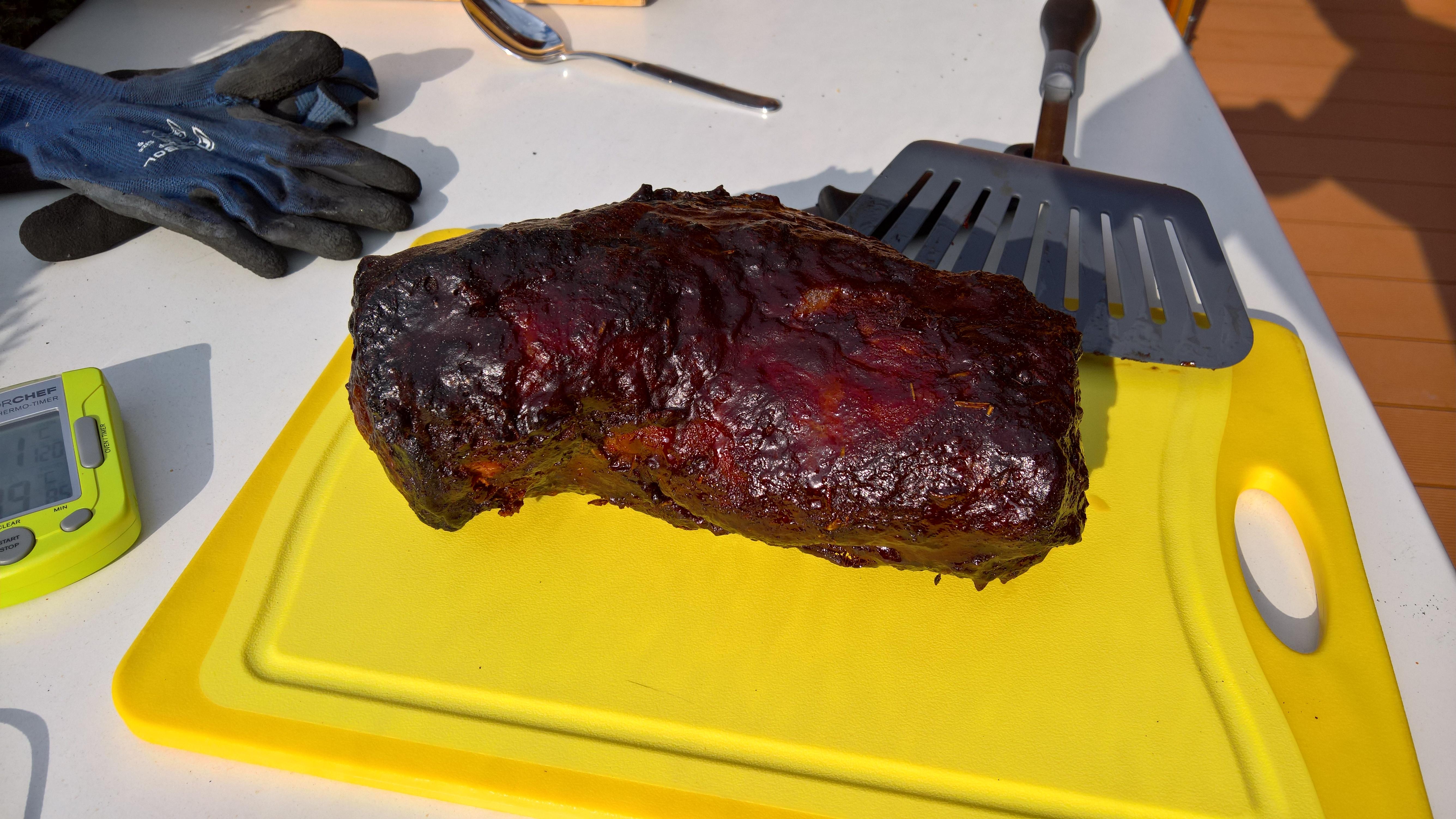 Die Zeit vom Braten her war okay, werde dem nächst aber bei der Zeit auf 110Grad gehen, hatte ja am Anfang gebraucht um auf die richtige Temperatur zu kommen und am Ende hatte ich noch mal 100Grad für die letzte dreiviertel Stunde.