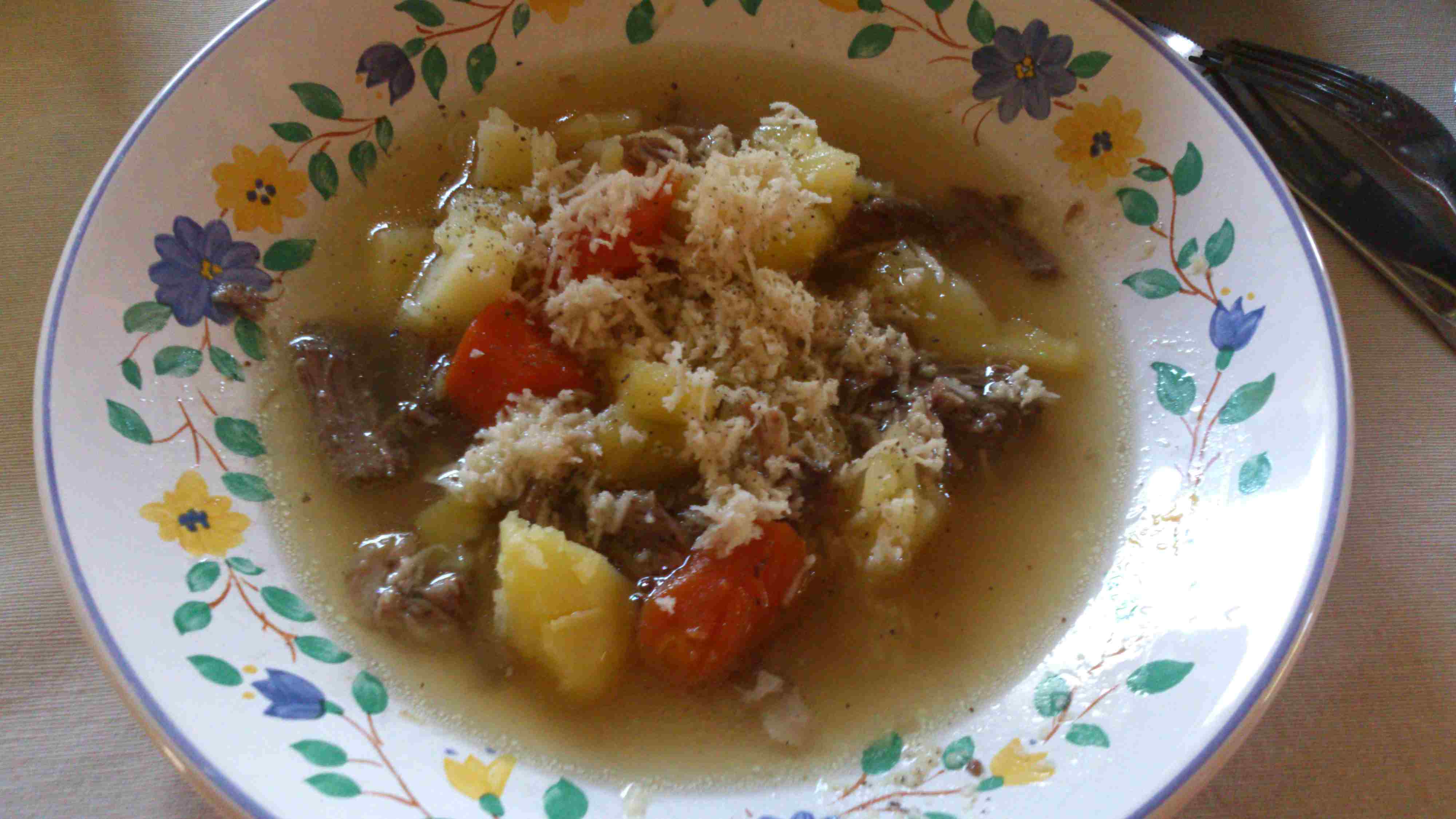 Gegessen haben wir die Sache mit Kren und Salzkartoffeln - dazu schüttet man noch etwas von der Brühe darüber. Das ist echt lecker gewesen. Kann man nix dagegen sagen.