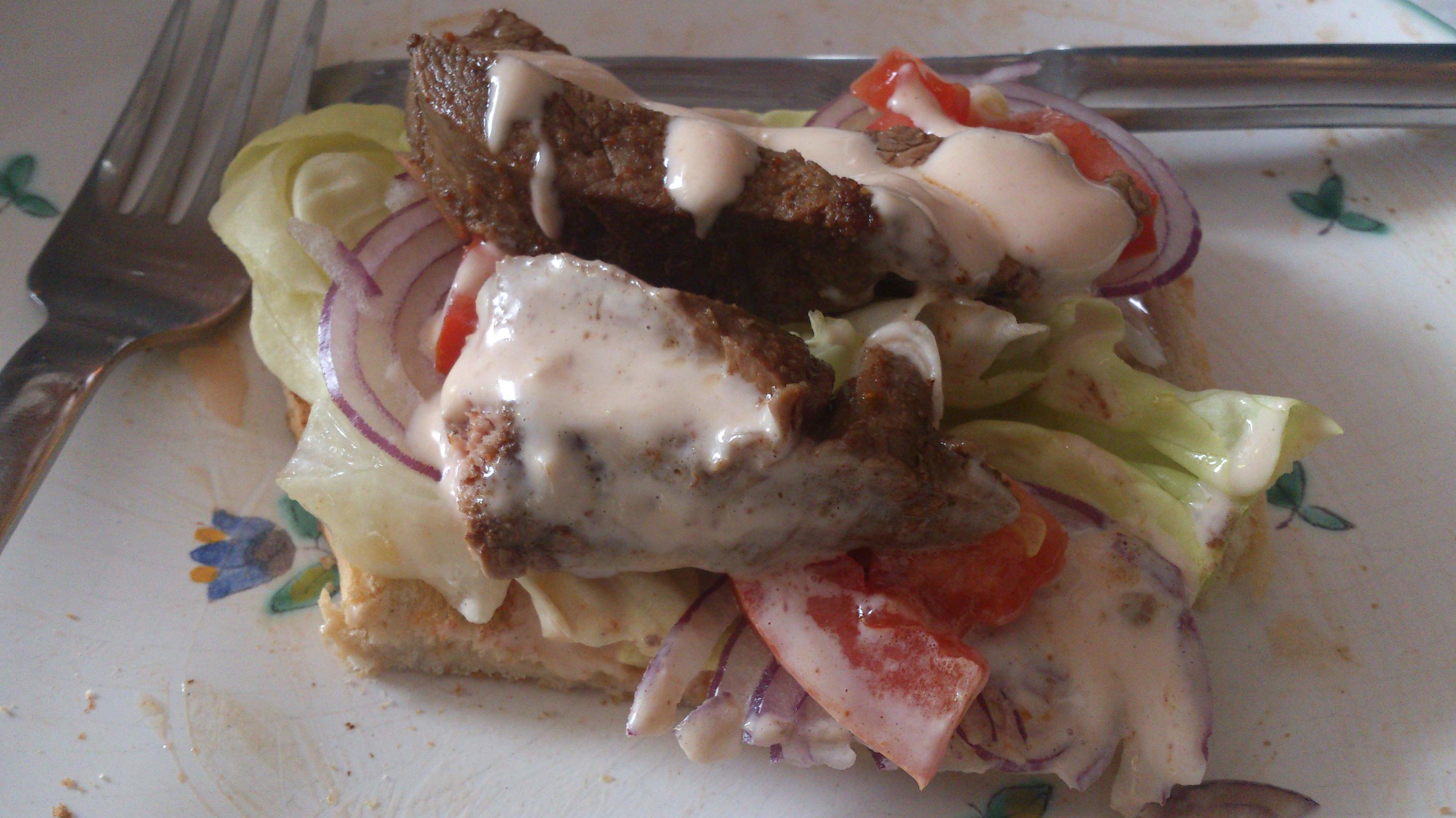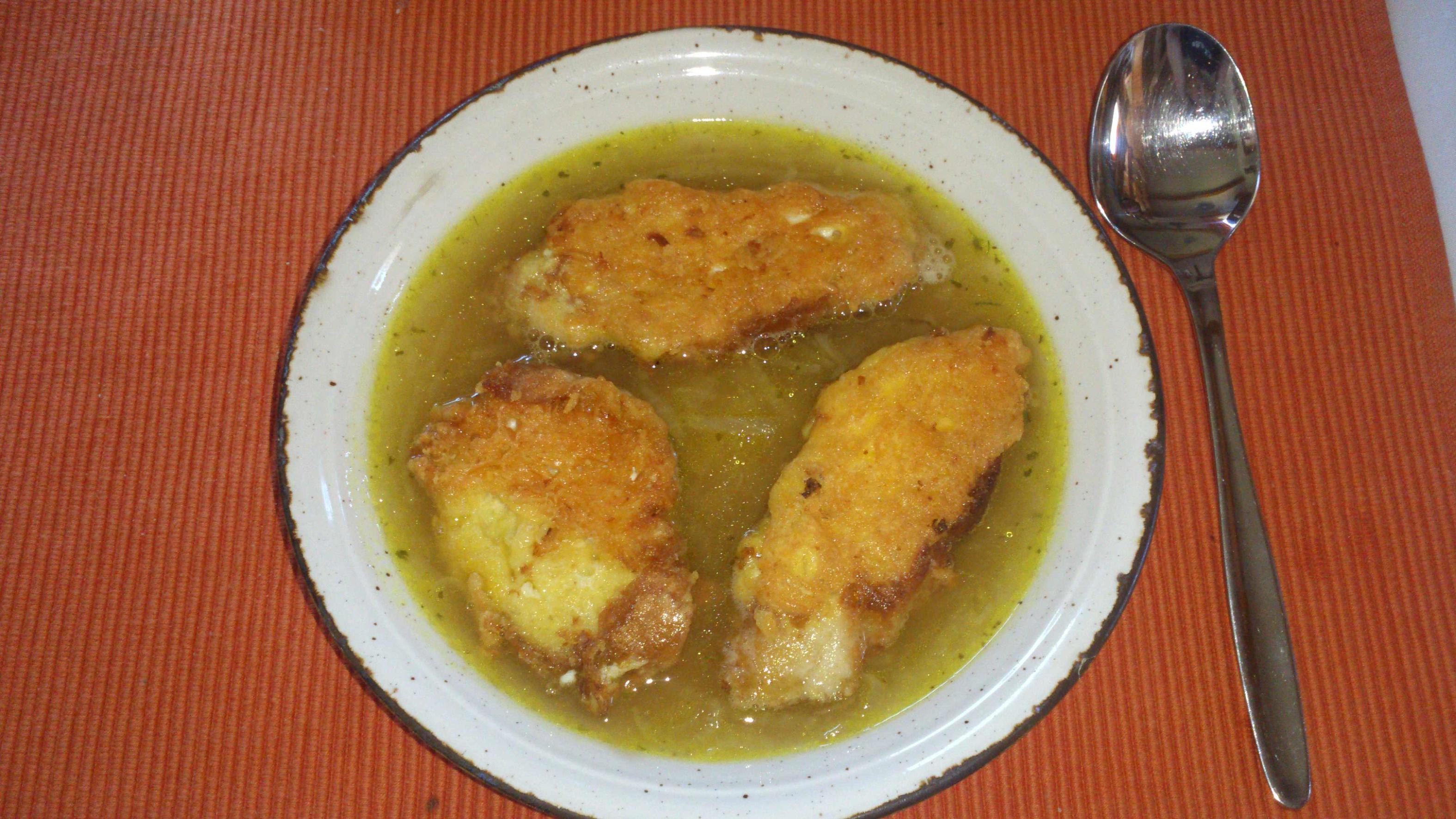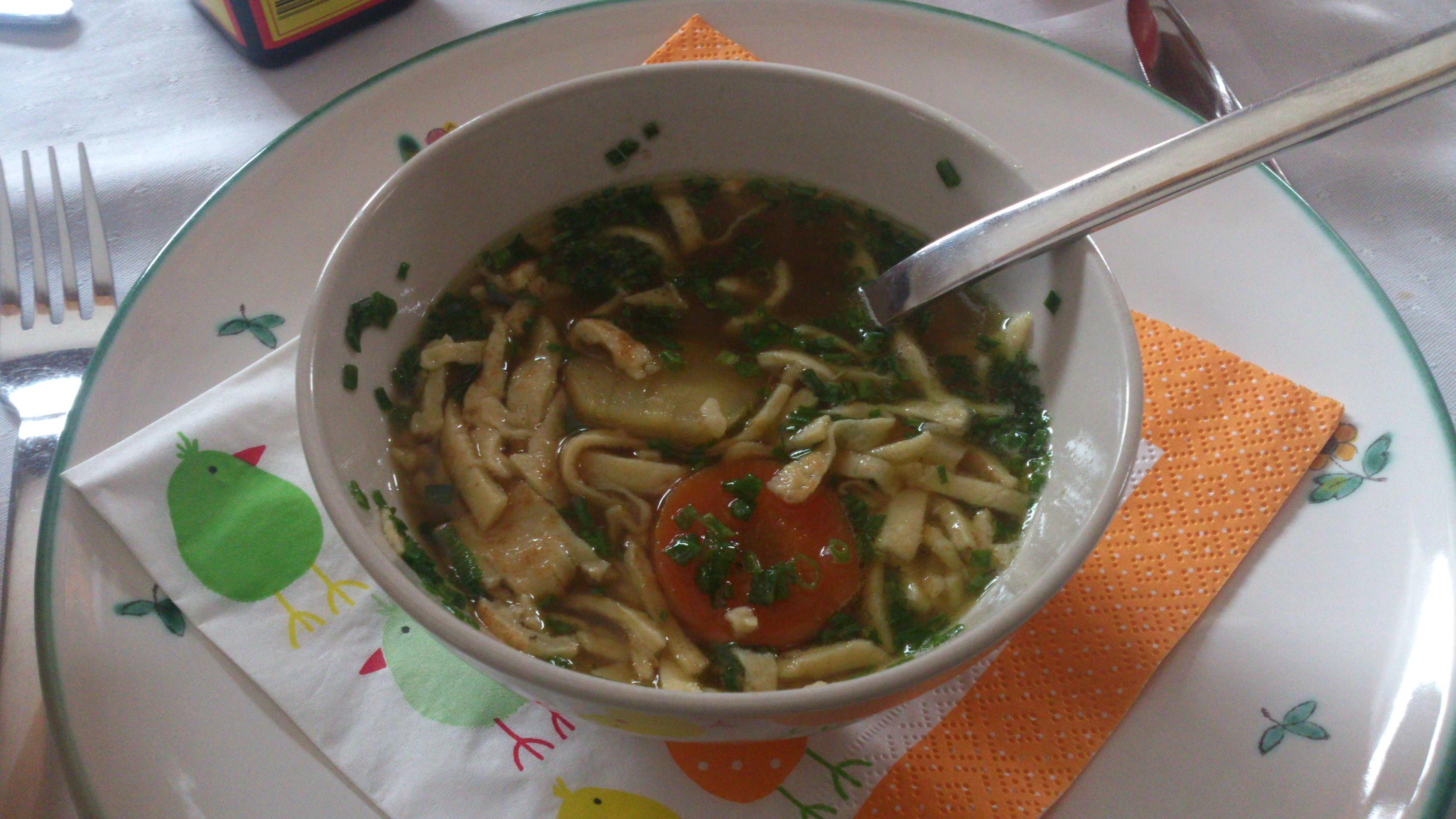Suppenpulver und ein bisschen Mehl gewürzt und eingedickt.