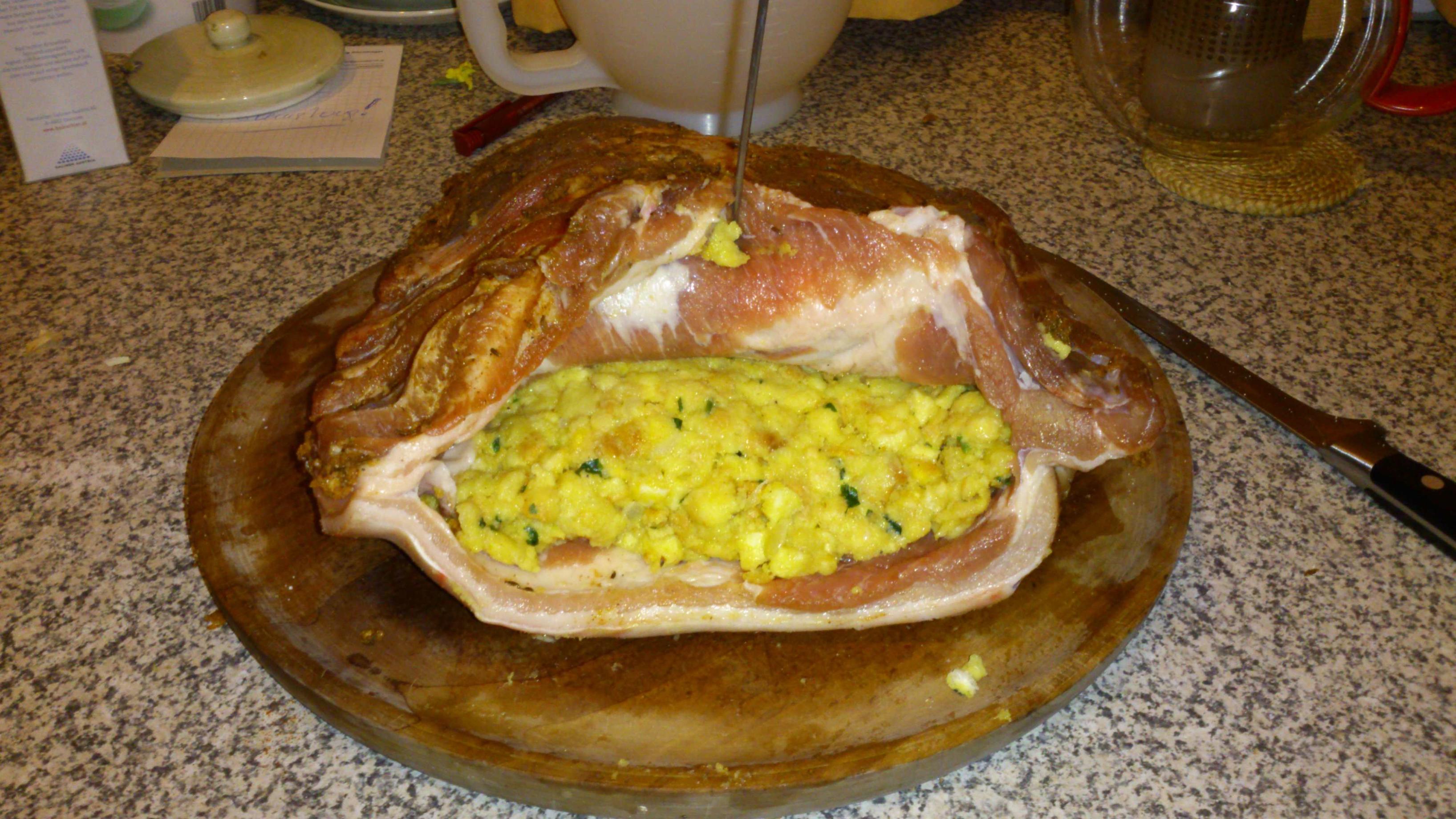 in den Bauch wurde eine Tasche geschnitten (küchentechnischer Ausdruck fällt mir gerade nicht ein