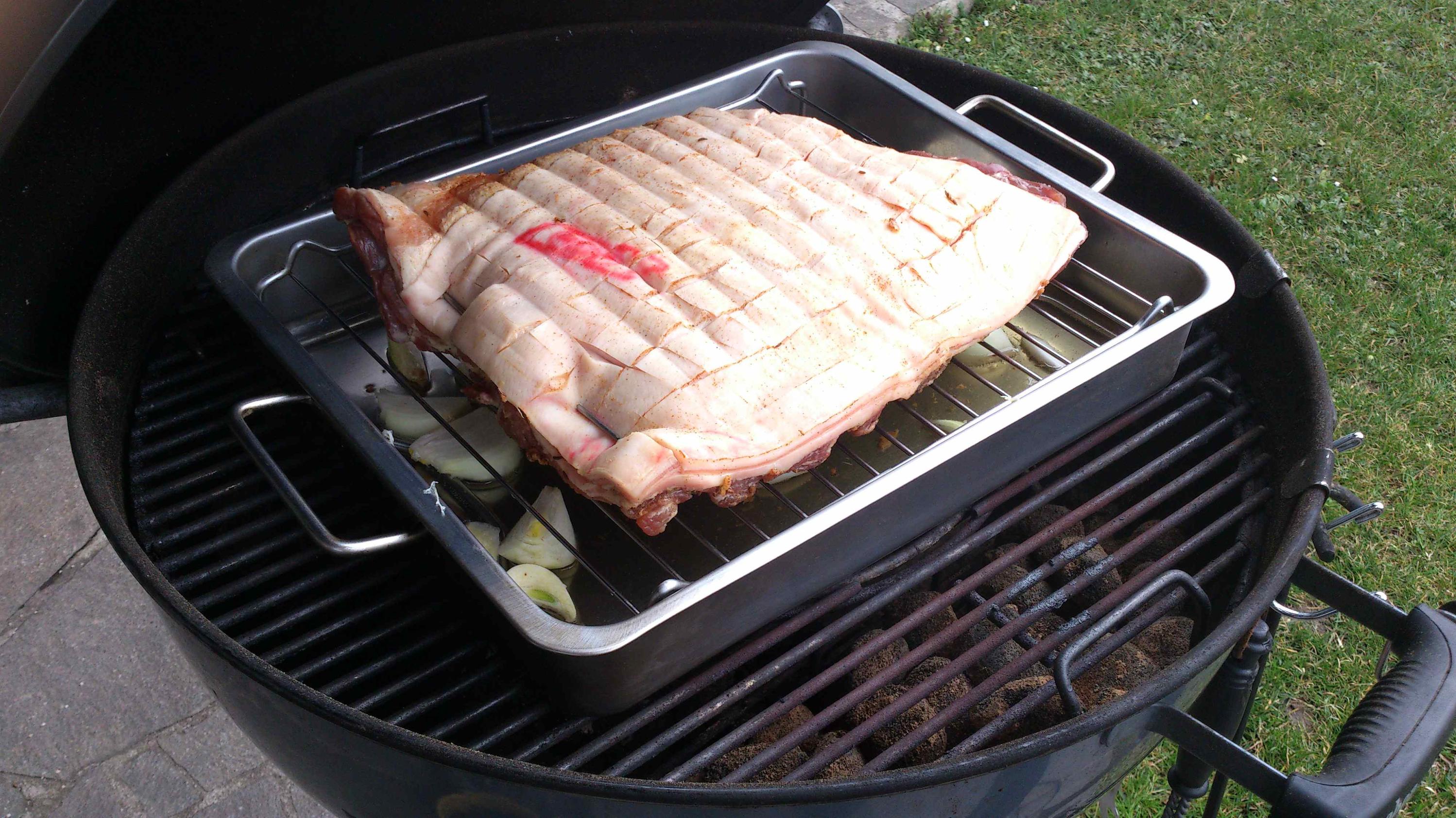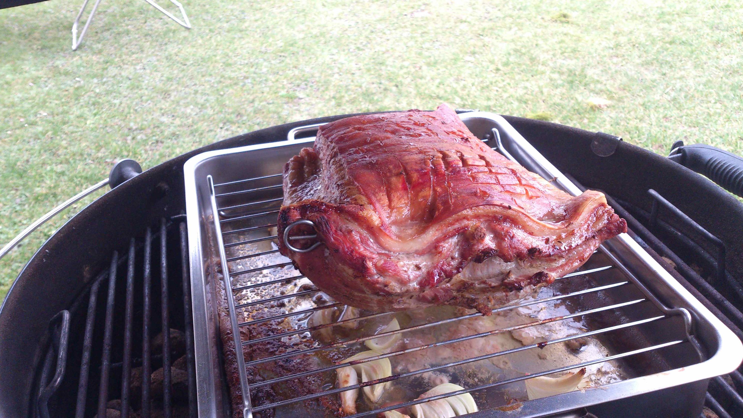 Braten am Grill mit Bier und Zwiebelviertel: (Schale vom Schweden)