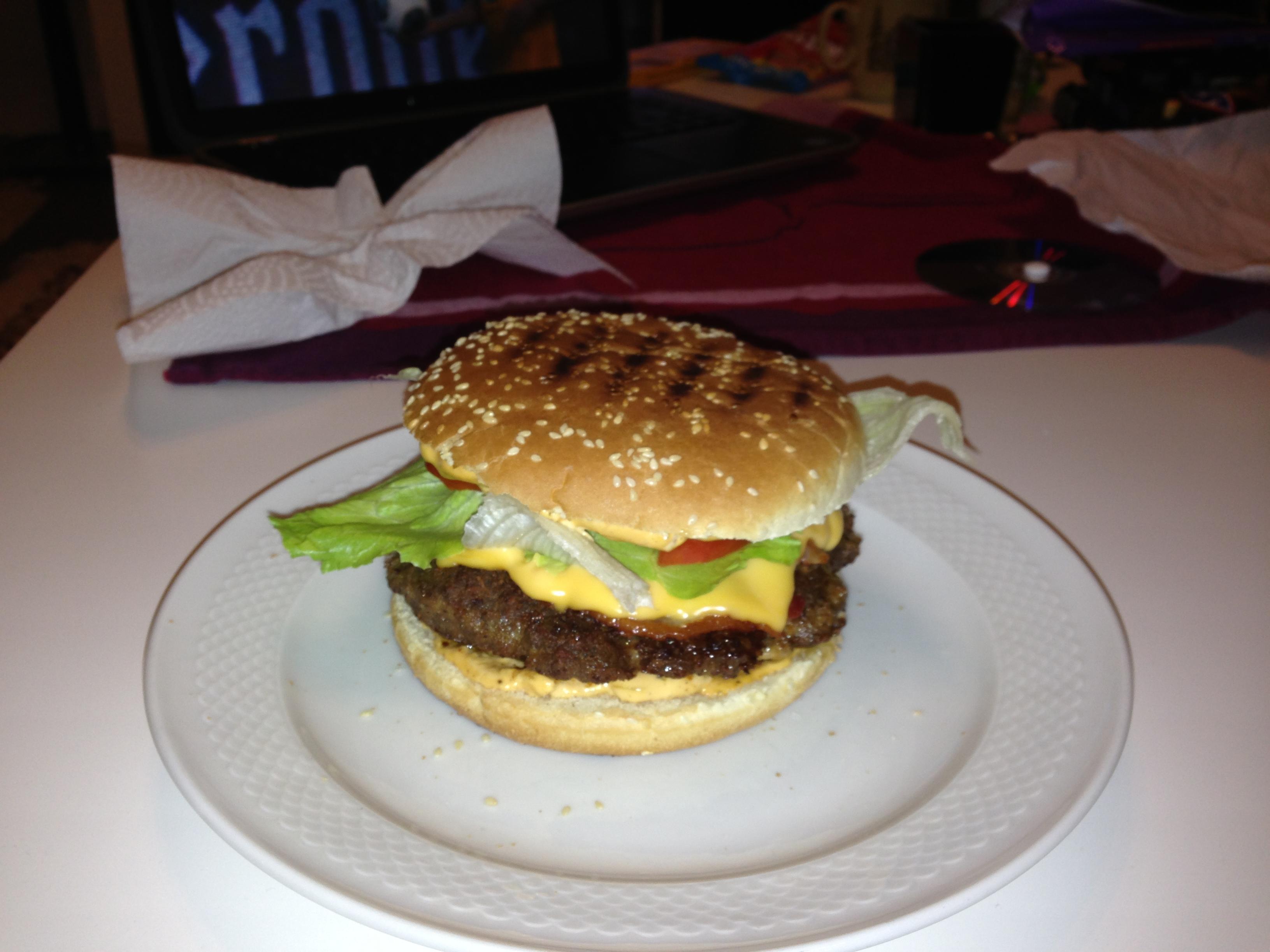 Der Austriaburger hat einen durch das Brötchen einfach nur heftigst gesättigt. War sehr lecker, aber schon ein son Ding zu verspeisen wurde eine Qual und ich bin kein schlechter Esser.