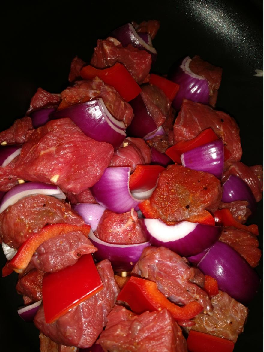 Dazu gabs Schmor- oder Röstgemüse aus der Gußpfanne. Chiccoree, Fenchel, Paprika, Knoblauch, Zwiebel und etwas Gewürze.
