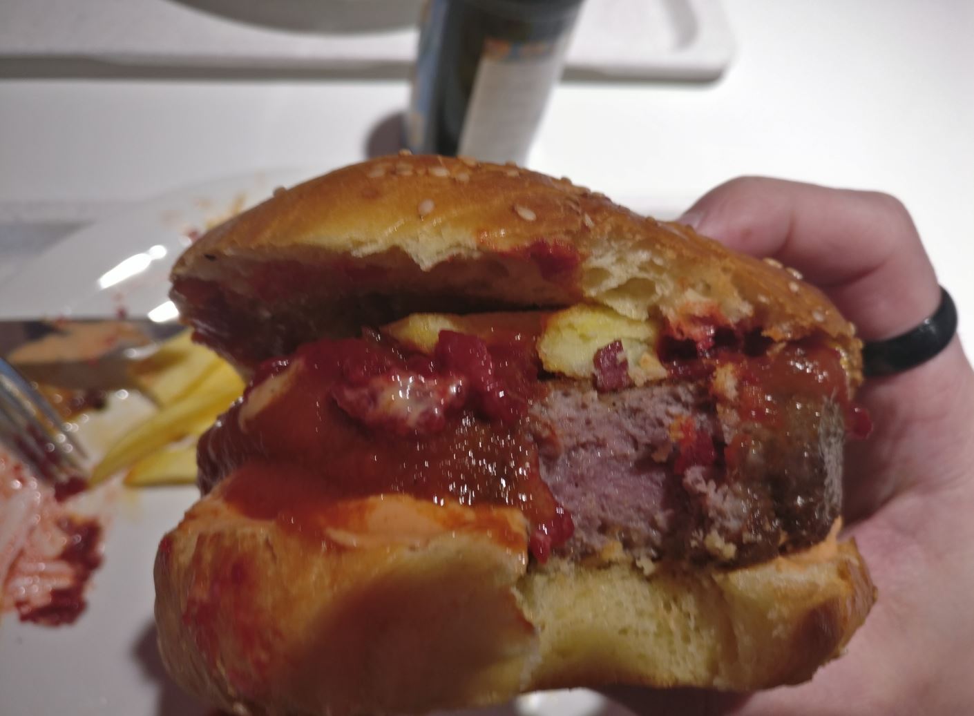 War echt sehr lecker Hab nur den Käse und Bacon vermisst, weil der zu Hause eben immer dabei ist