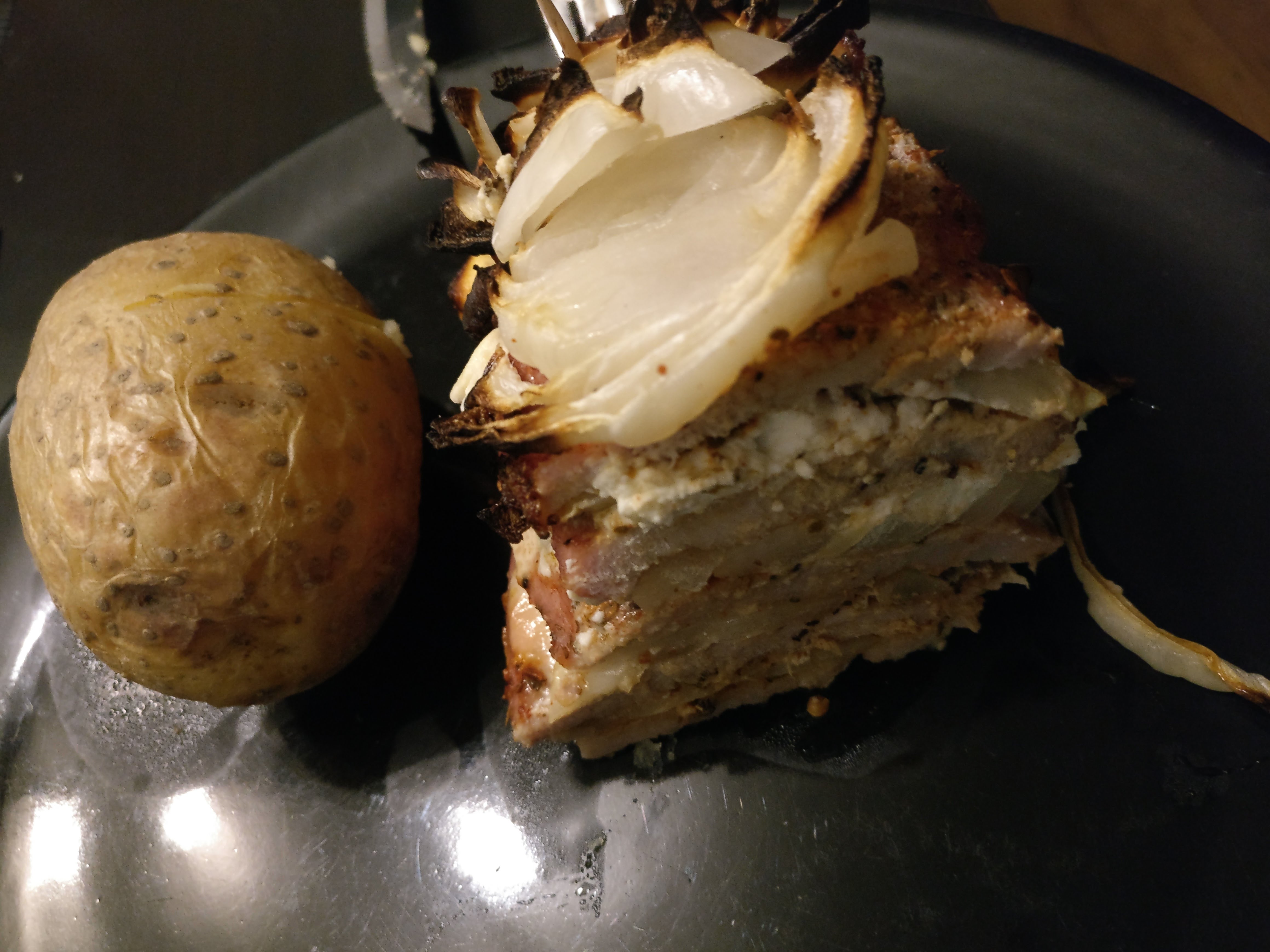 Haben letzte Tage auch mal den Grill wieder ausgepackt, gab Schichtfleisch mit Feta und Zwiebeln