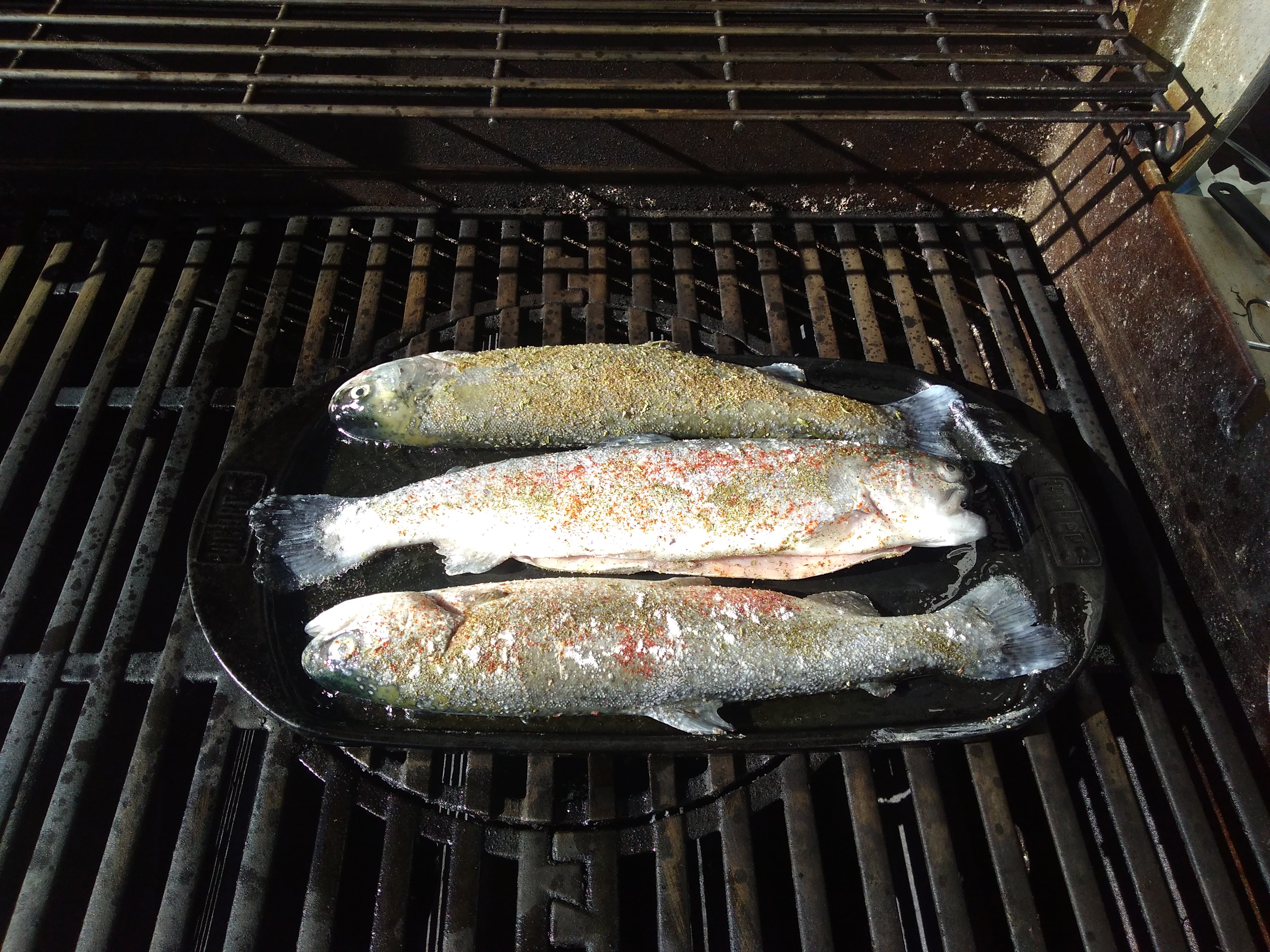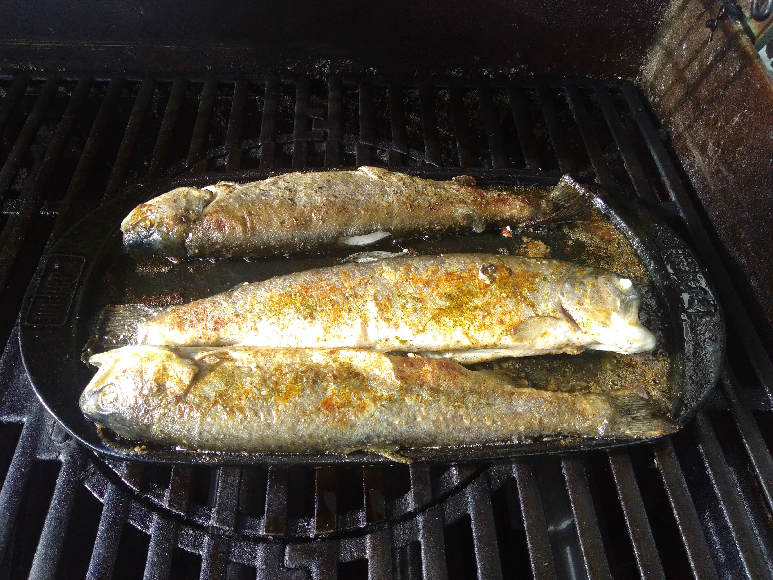 So am Samstag gabs schnell mal frische Forellen vom Gasgrill. Hab sie aber etwas bemehlt und dann in Öl auf der Keramikplatte gebraten.