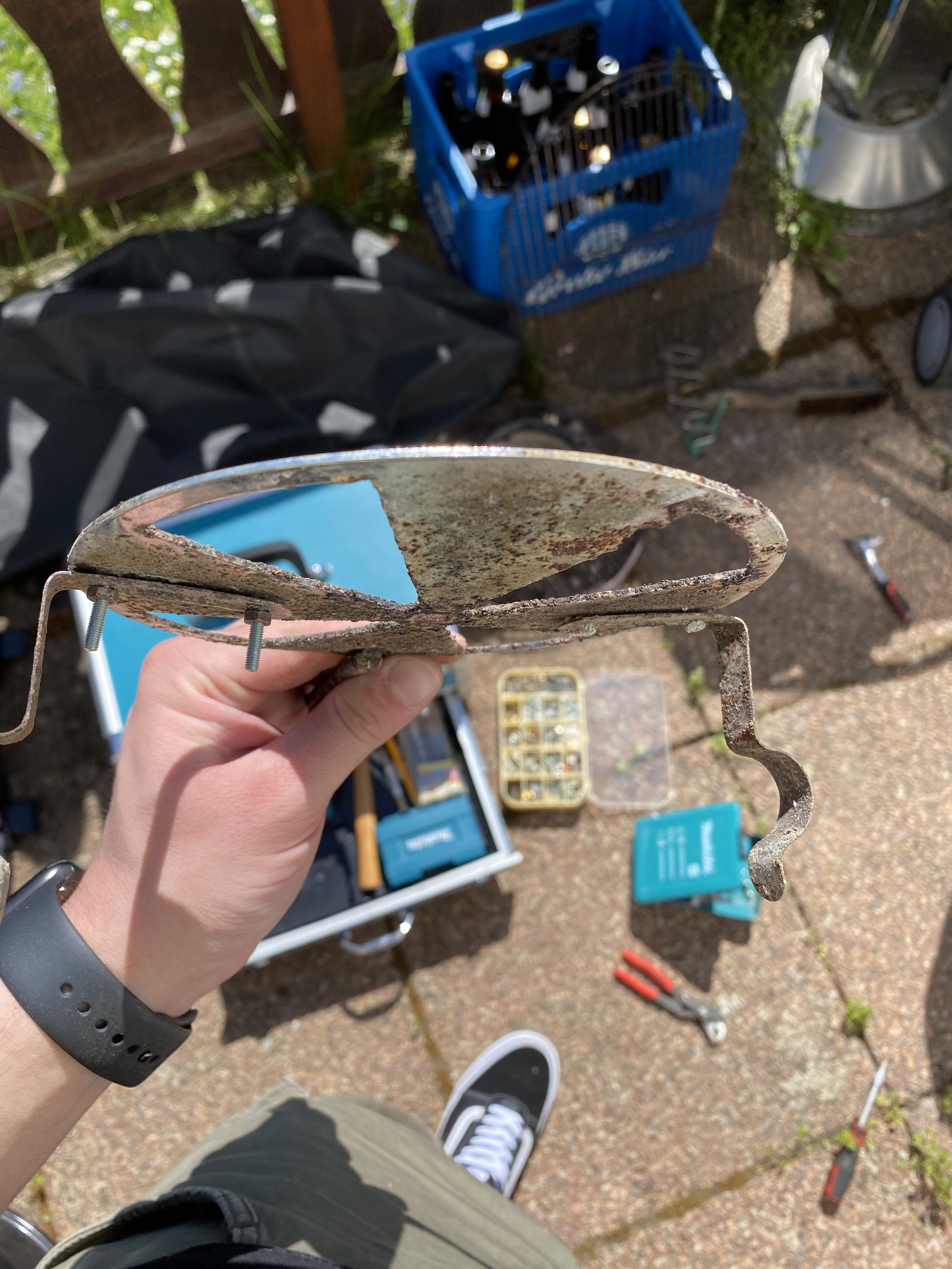Ist da abgerissen wo es genietet ist, werde ich wohl einfach durchbohren und ne Schraube durch drehen, dann hält das wieder für die nächsten Jahre, am besten auf der anderen Seite direkt auch.