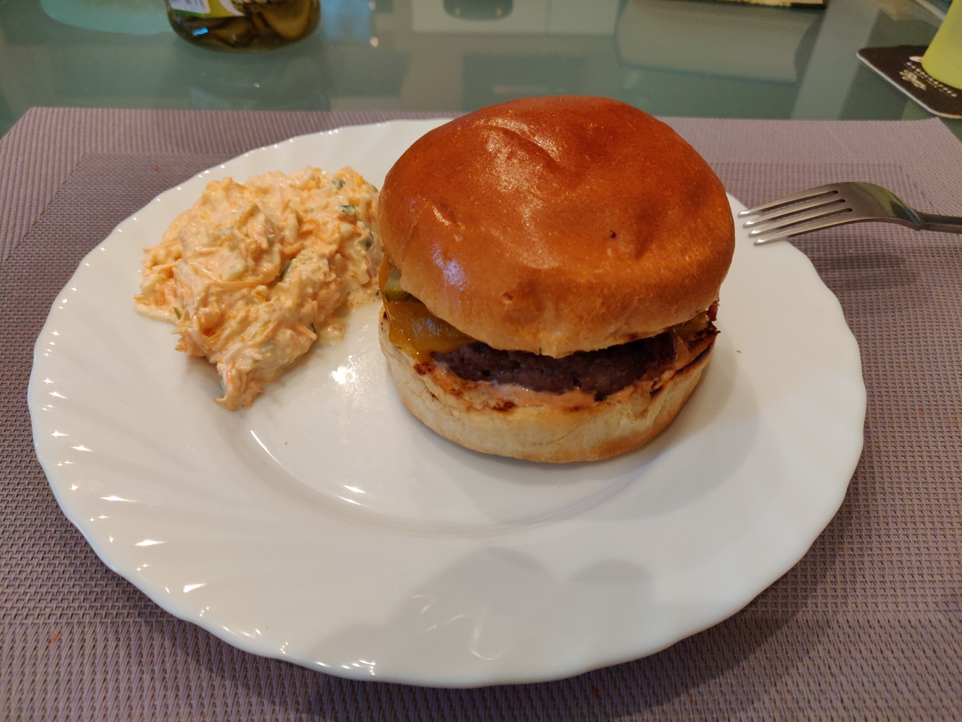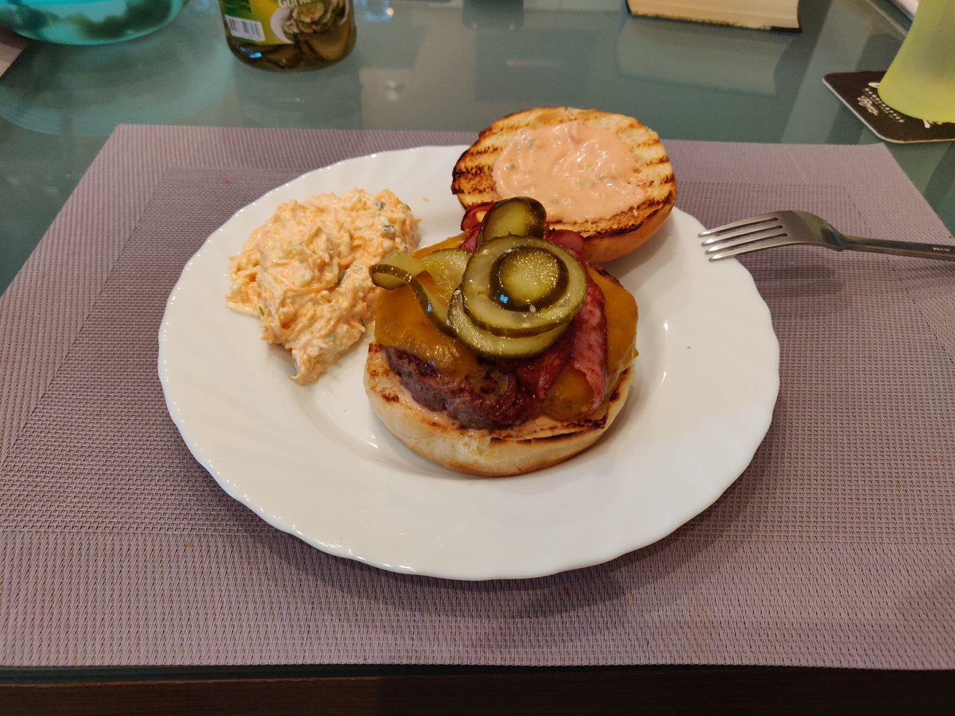 Wir haben das erste Mal auf dem Burnhard Wayne Burger versucht. Waren für den ersten Versuch richtig gut. Der Burger war innen noch leicht rosa. Die Sauce selber frei Schnauze aus Mayo, Ketchup, Weißweinessig, Salz, Pfeffer, etwas Tabasco und feinen Gurkenwürfeln zusammen gerührt. Für das erste Mal selber Burger machen waren wir mehr als zufrieden.