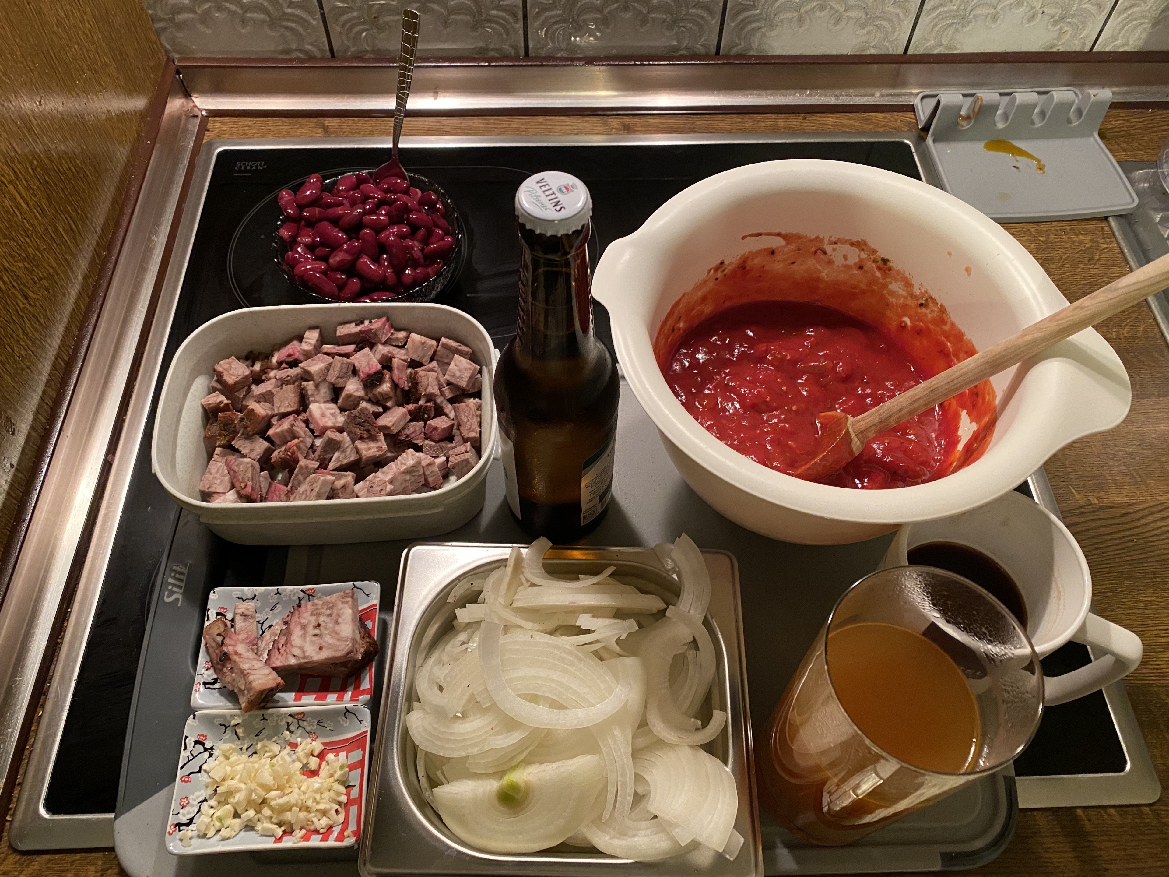 Dabei hab ich direkt die Brisket Reste verwertet und daraus ein Chili gemacht.
