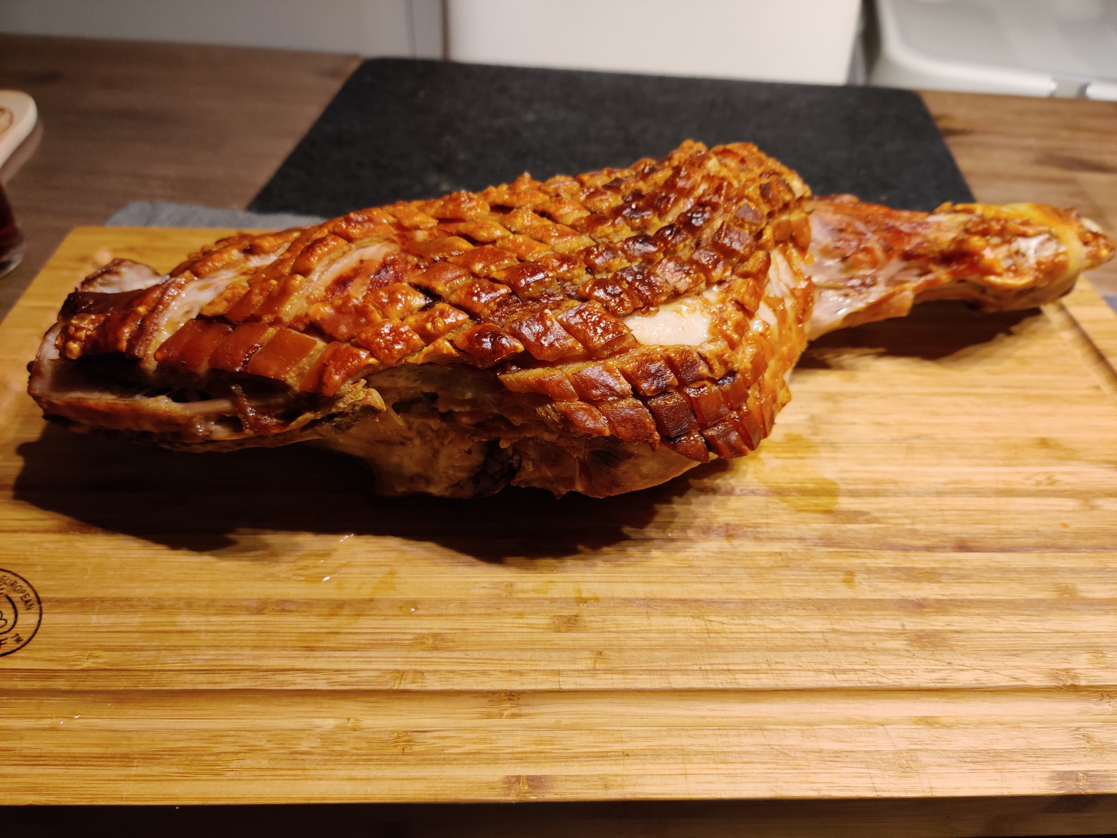 Ist glaub das erste Mal dass die Schwarte so wurde wie ich mir das vorstelle, fast überall sehr knusprig, aber auch ganz leicht zum durchbeisen (nicht so harter Blombenzieher Style).