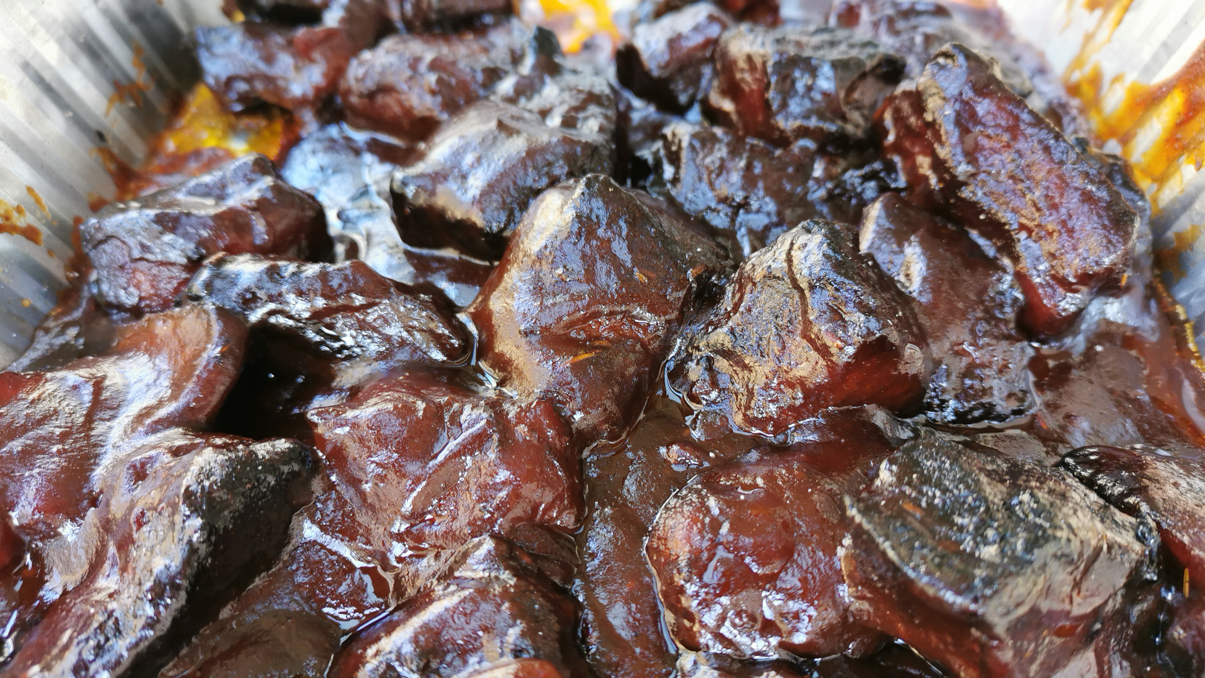 Hatte vorgestern ne kleine Rinderbrust für Brisket eingelegt und als Backup Spare Rips, Backup daher, da ich erstmals Smoked Pork Belly Burned Ends versucht hatte und muss sagen, Klasse
