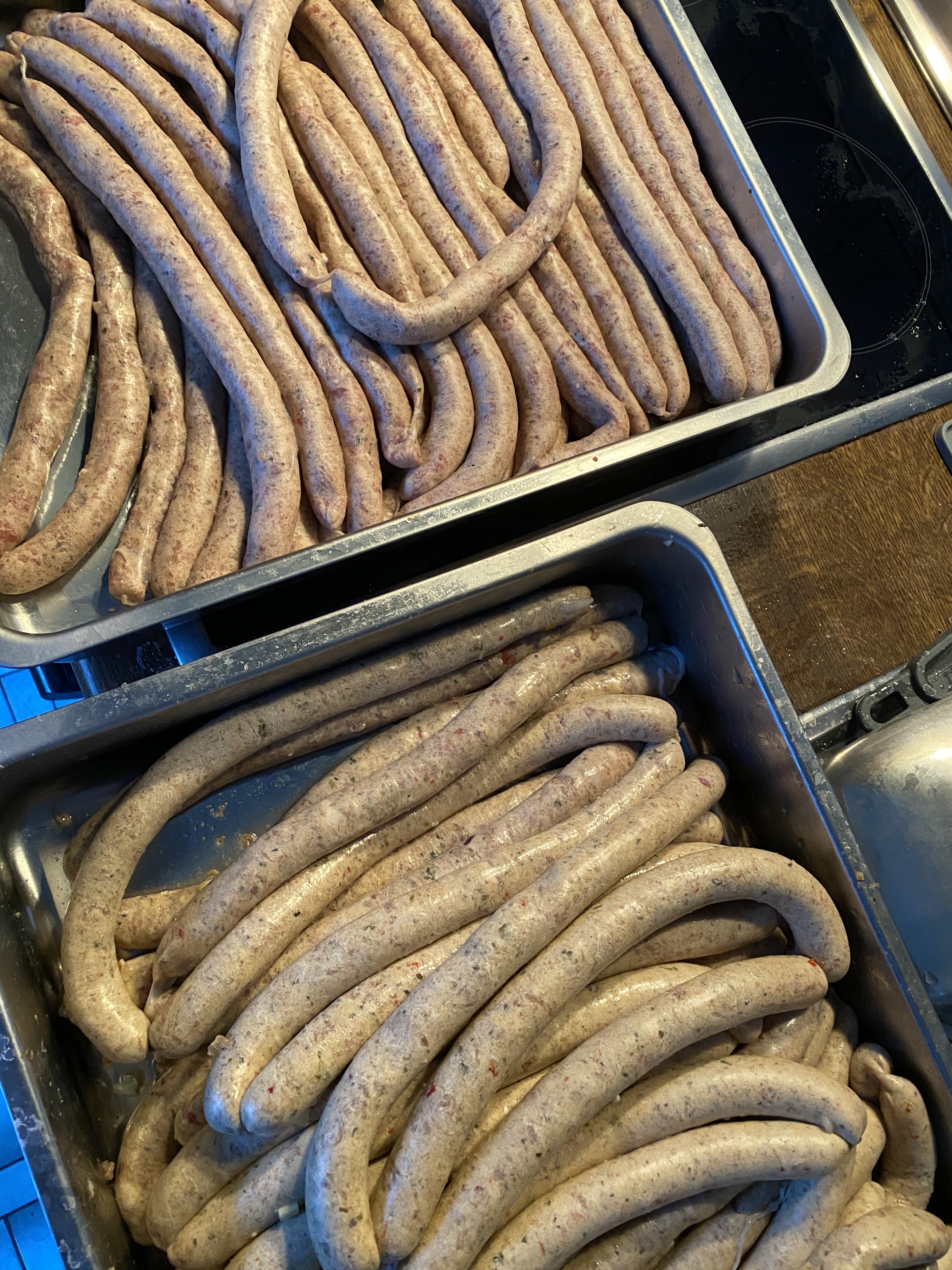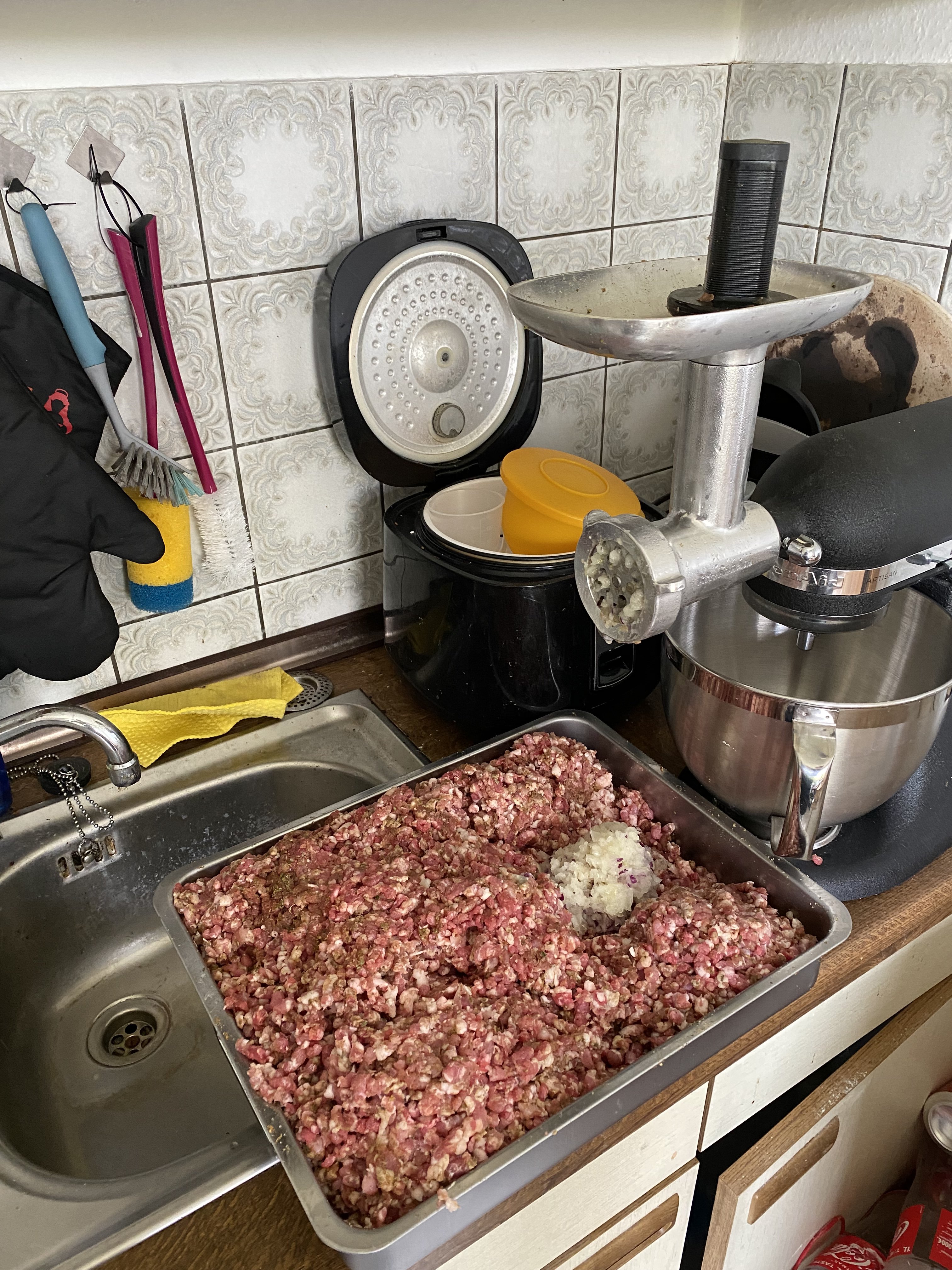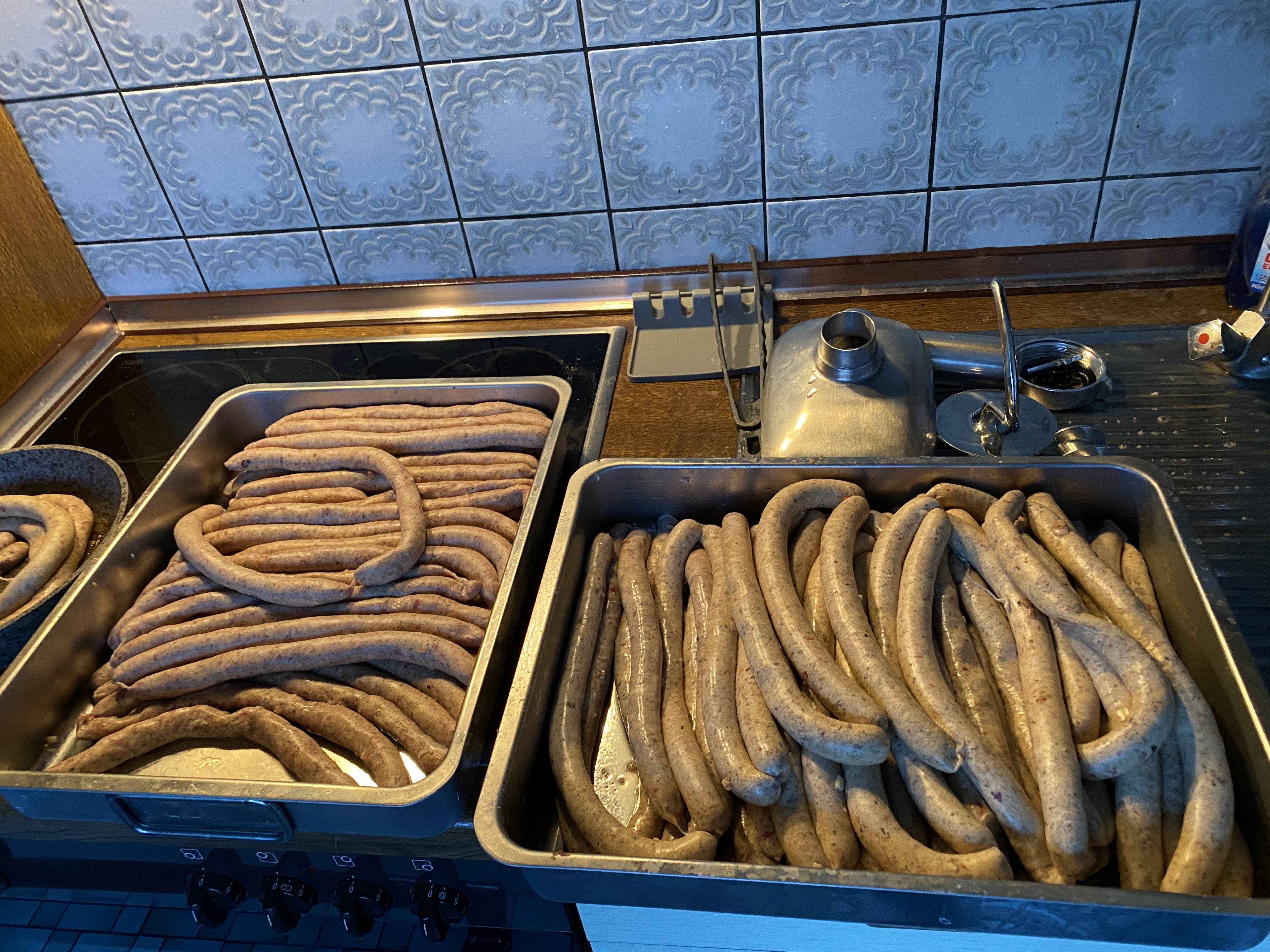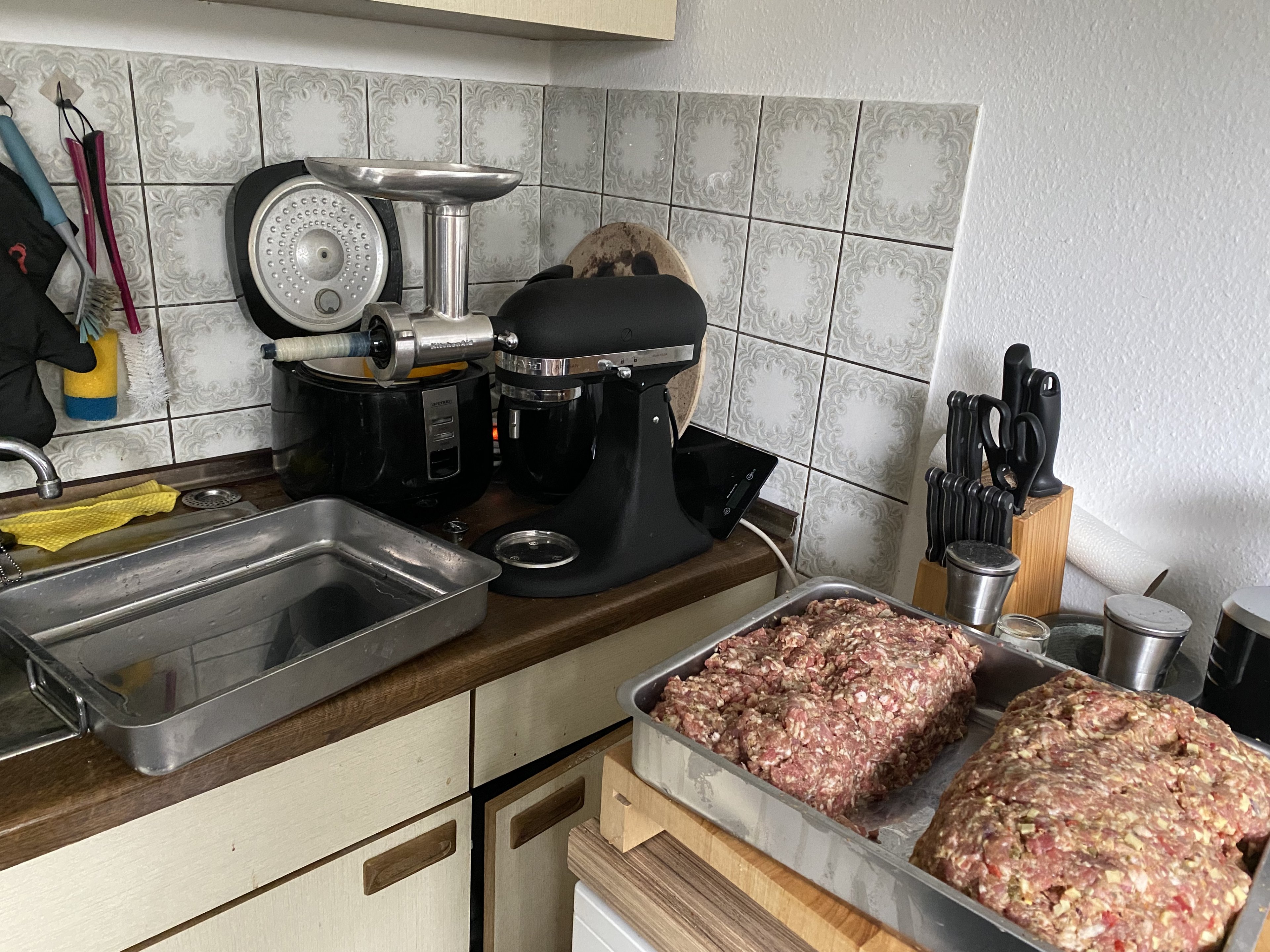 Ich hab da jetzt locker 10 Stunden mit allem verbracht, am Ende hatte ich echt gar kein Bock mehr aber das Brät kann man ja nicht einfach mal so stehen lassen und morgen weiter machen.