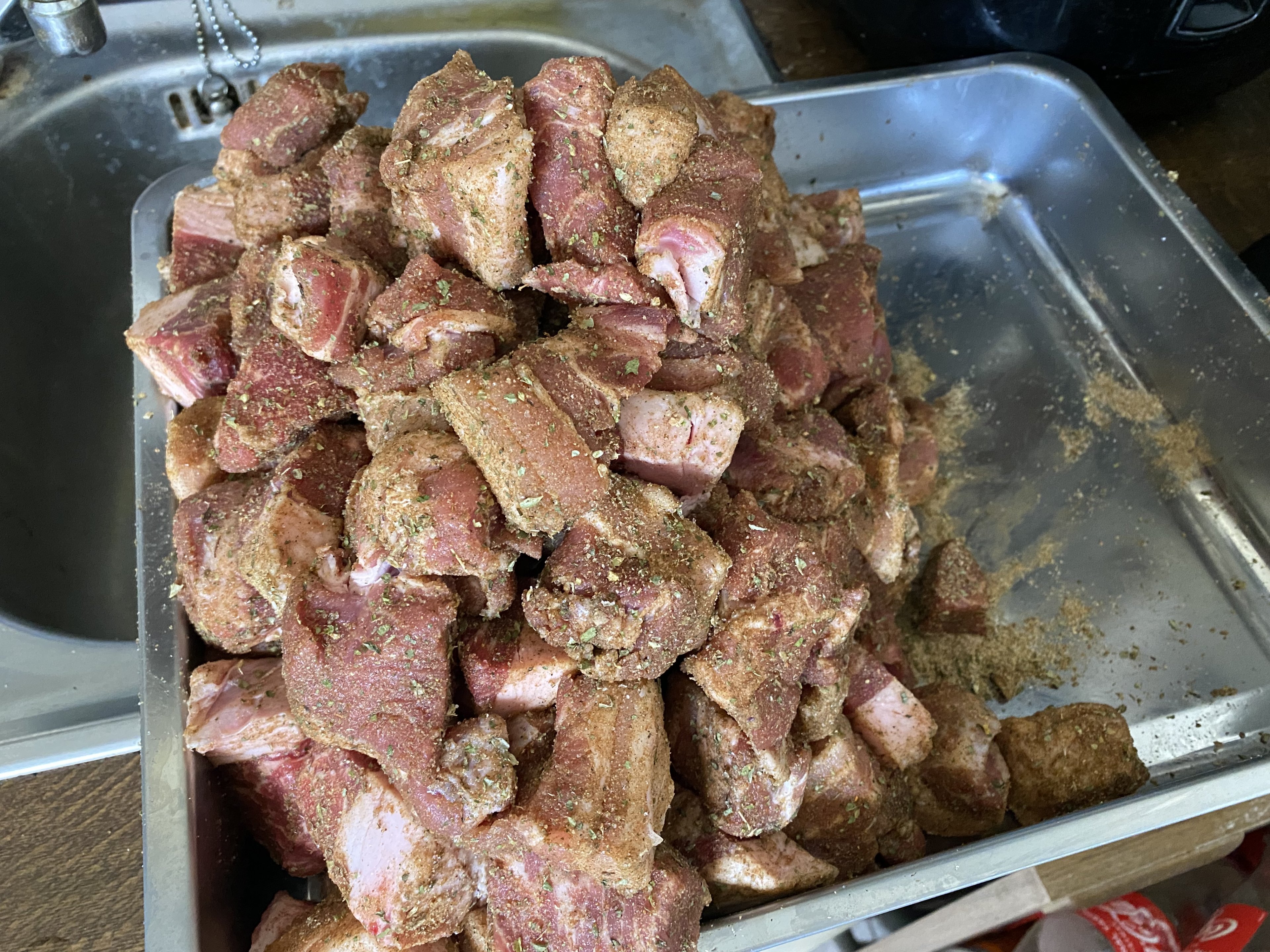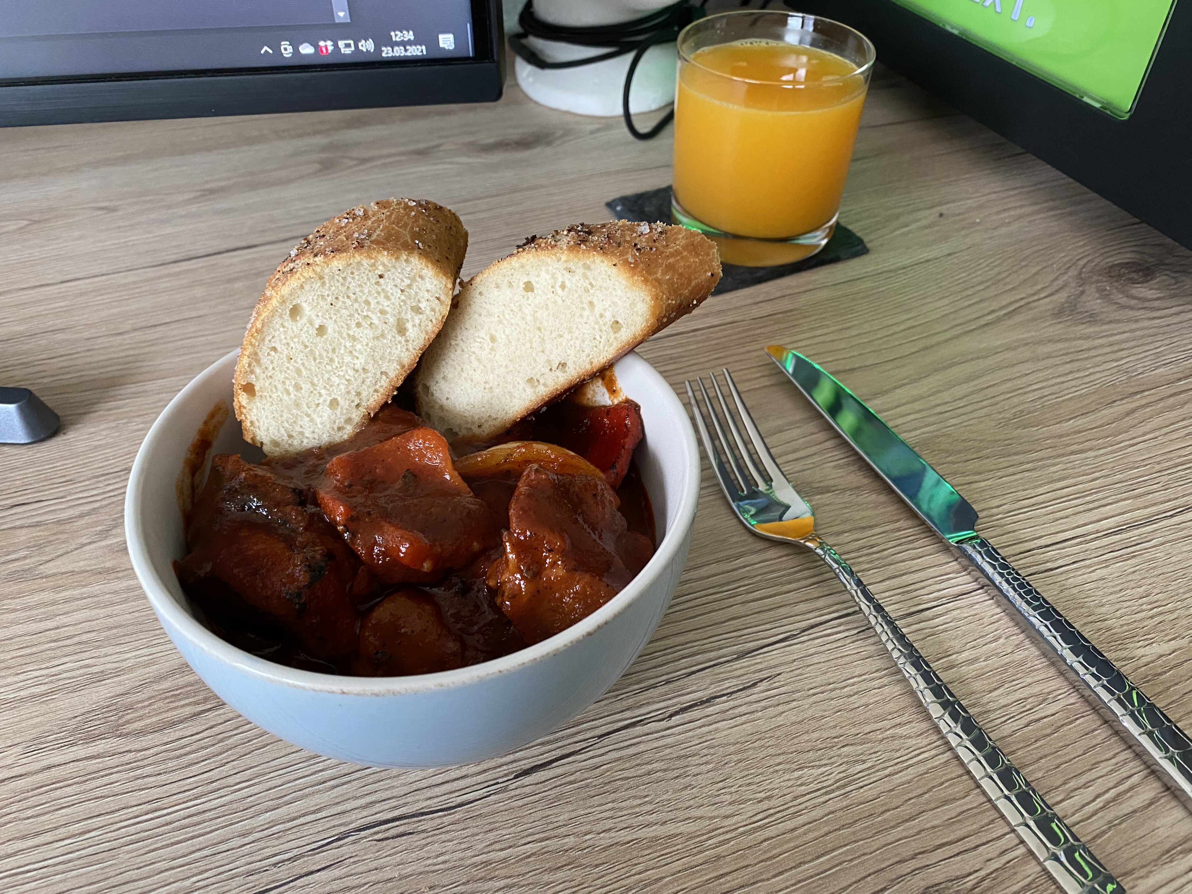 Heut gab es pünktlich zum Mittag ein schönen Schaschliktopf aus dem DO mit selbst gebackenem Salz/Pfeffer Baguette.