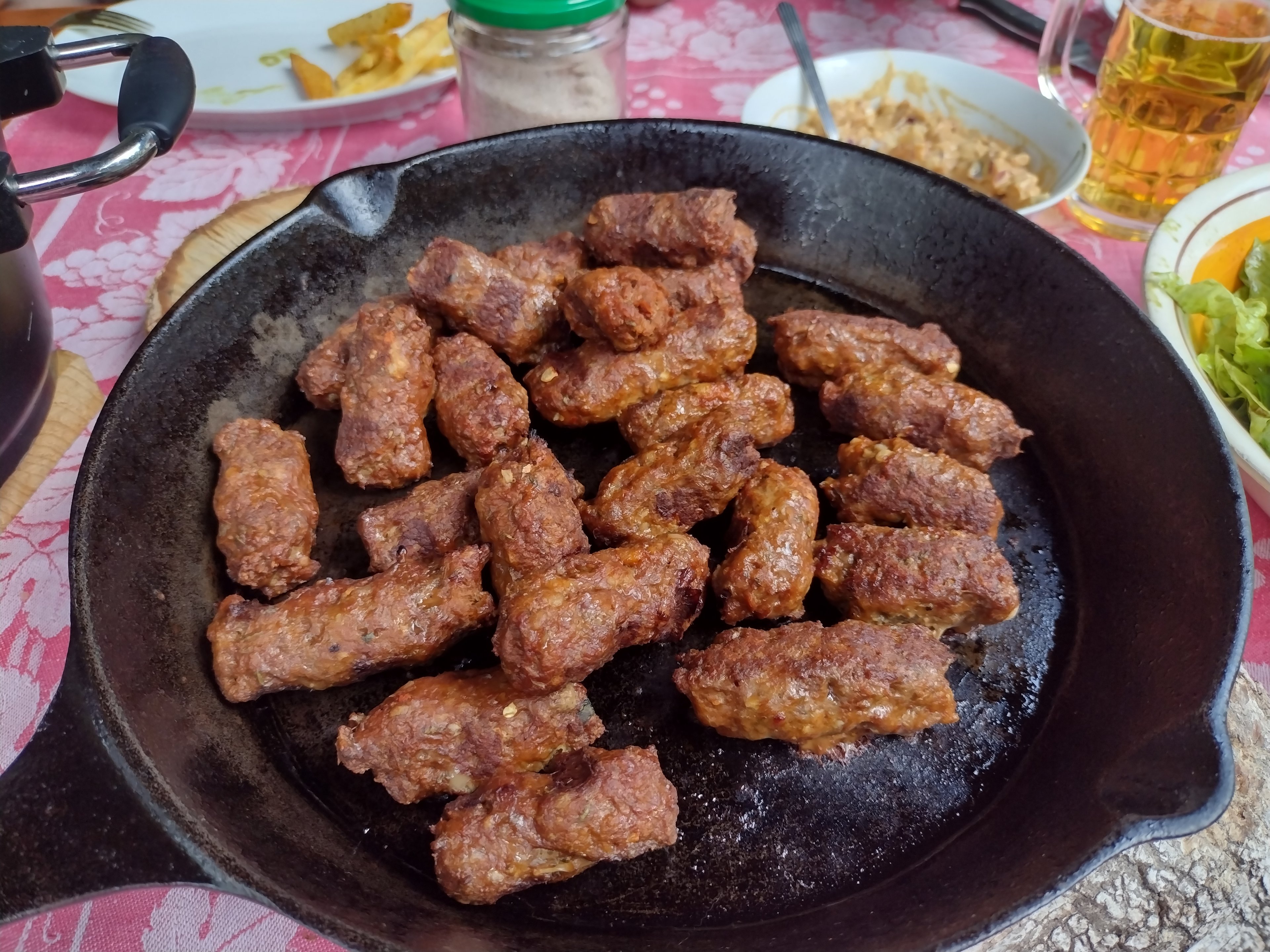 Cevapcici: 1x Ei, 2 Scheiben eingeweichter Toast, Wacholderbeeren, Pfeffer, Salz, Paprika edelsüß, Chiliflocken, Beizekraut