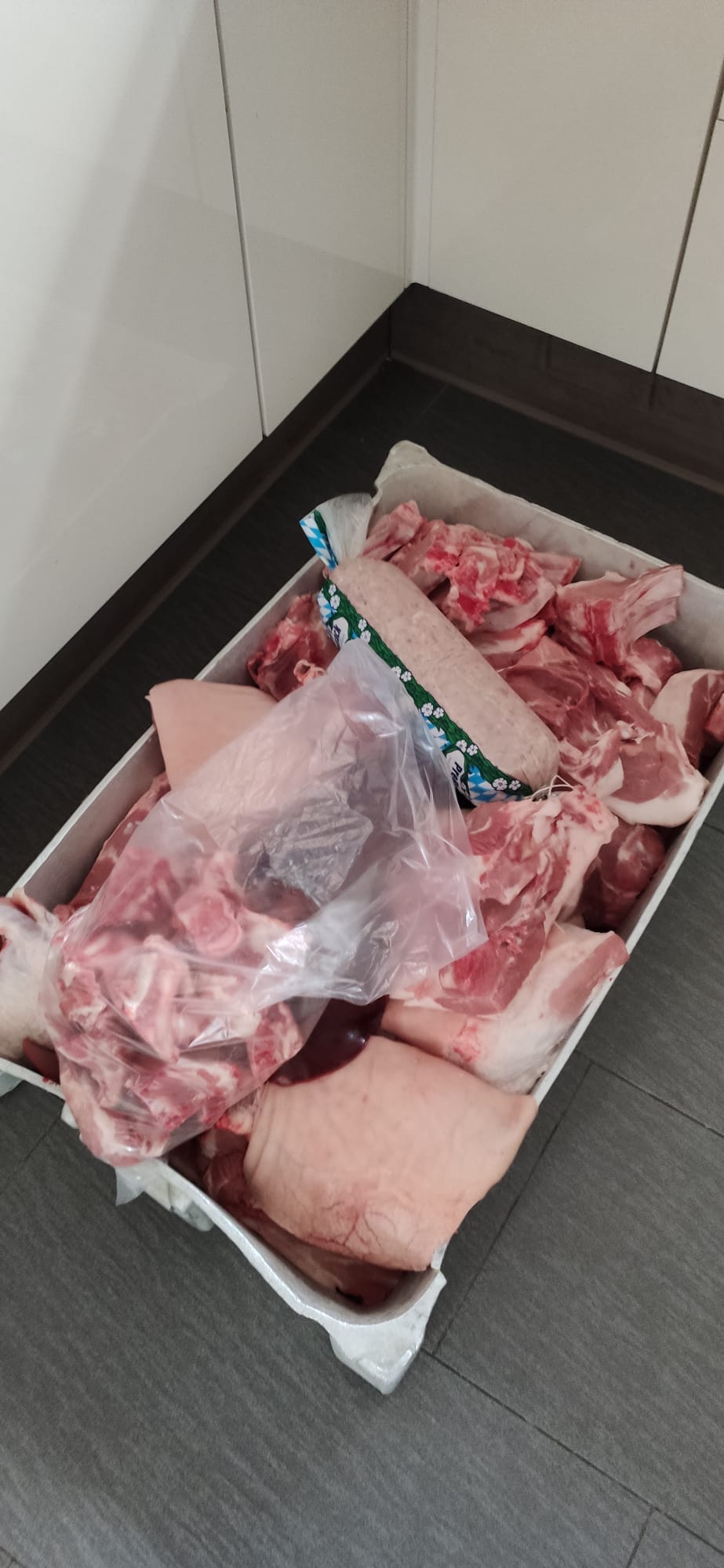 Ein paar Ferkel wurden jetzt mit gut 55kg geschlachtet (er kann nicht alle Tiere groß werden lassen).