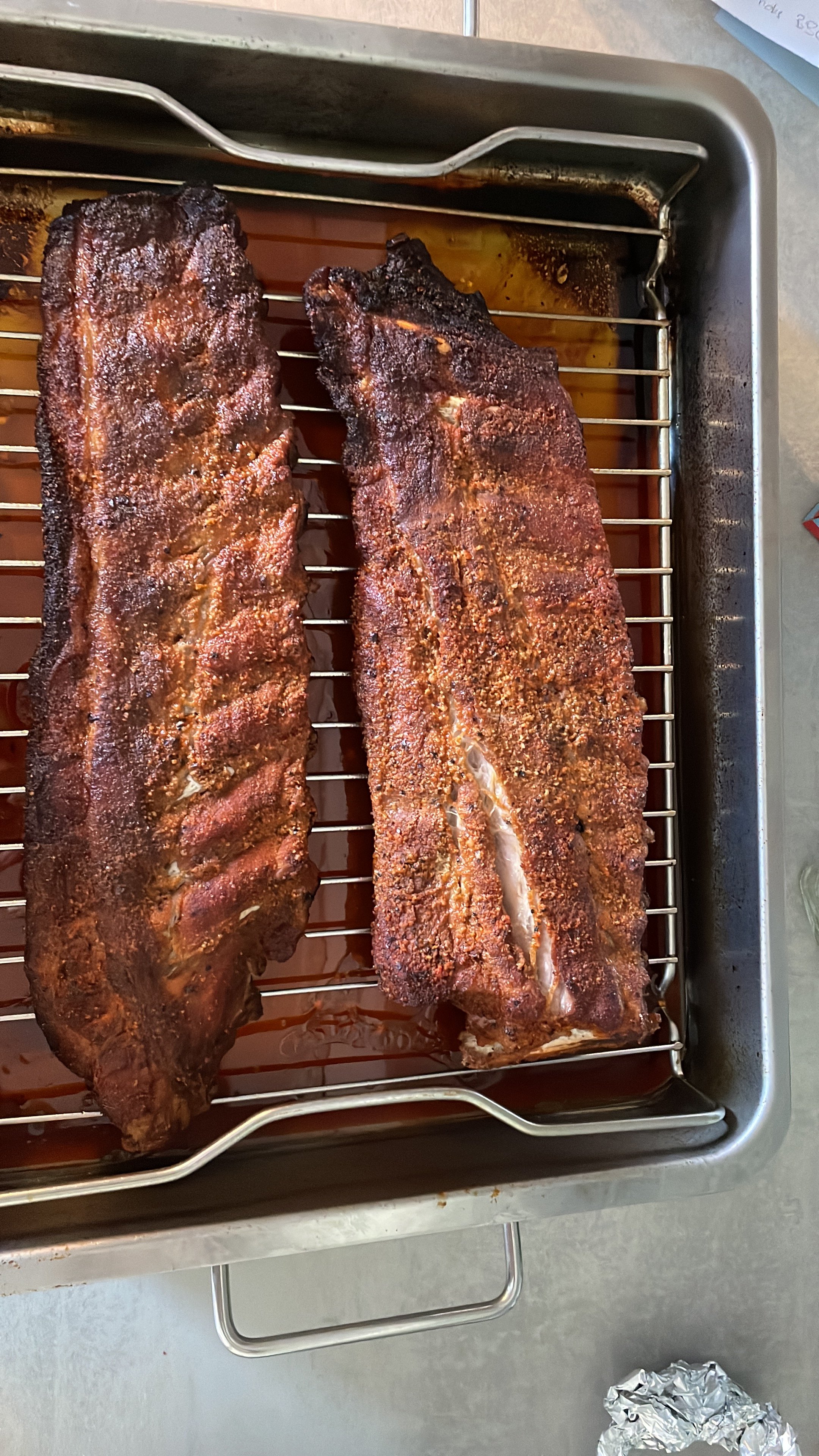 Gerubt habe ich meine mit Magic Dust, hab sie allerdings nur 2h ziehen lassen. Über Nacht ist nicht zu empfehlen, da der Rub den Ribs zu viel Flüssigkeit entzieht und dann die Gefahr besteht, dass sie zu trocken werden.