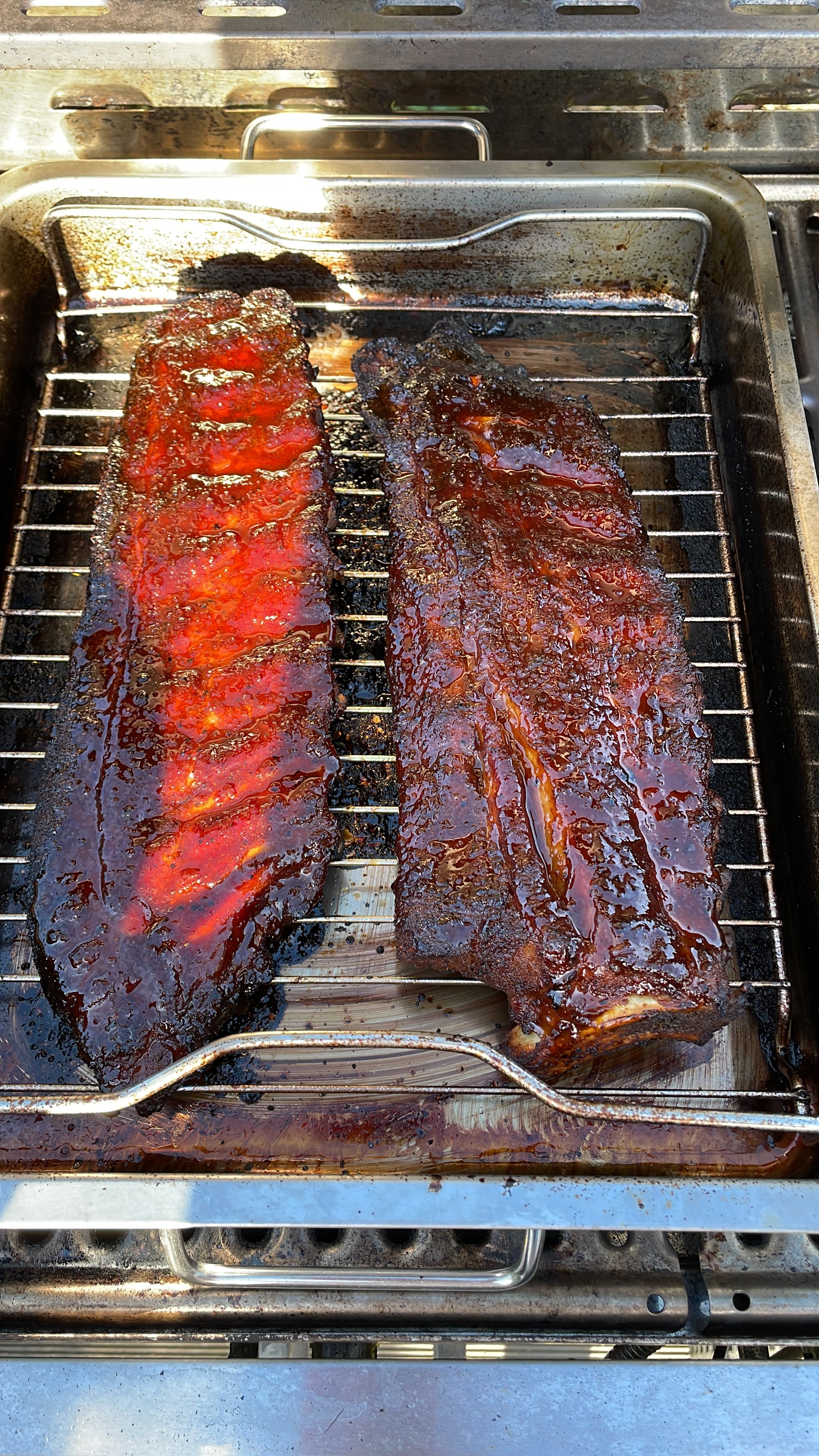 3-2-1 kann man schon machen ich mach da nur nie ein riesen Ding drum ne Zeit lang in den smoker dann mit irgend nem Saft in so Ikea Dinger und am Ende glasieren wenn der garpunkt passt macht das ganze zaubern Außenraum mMn. nur Wenig aus.