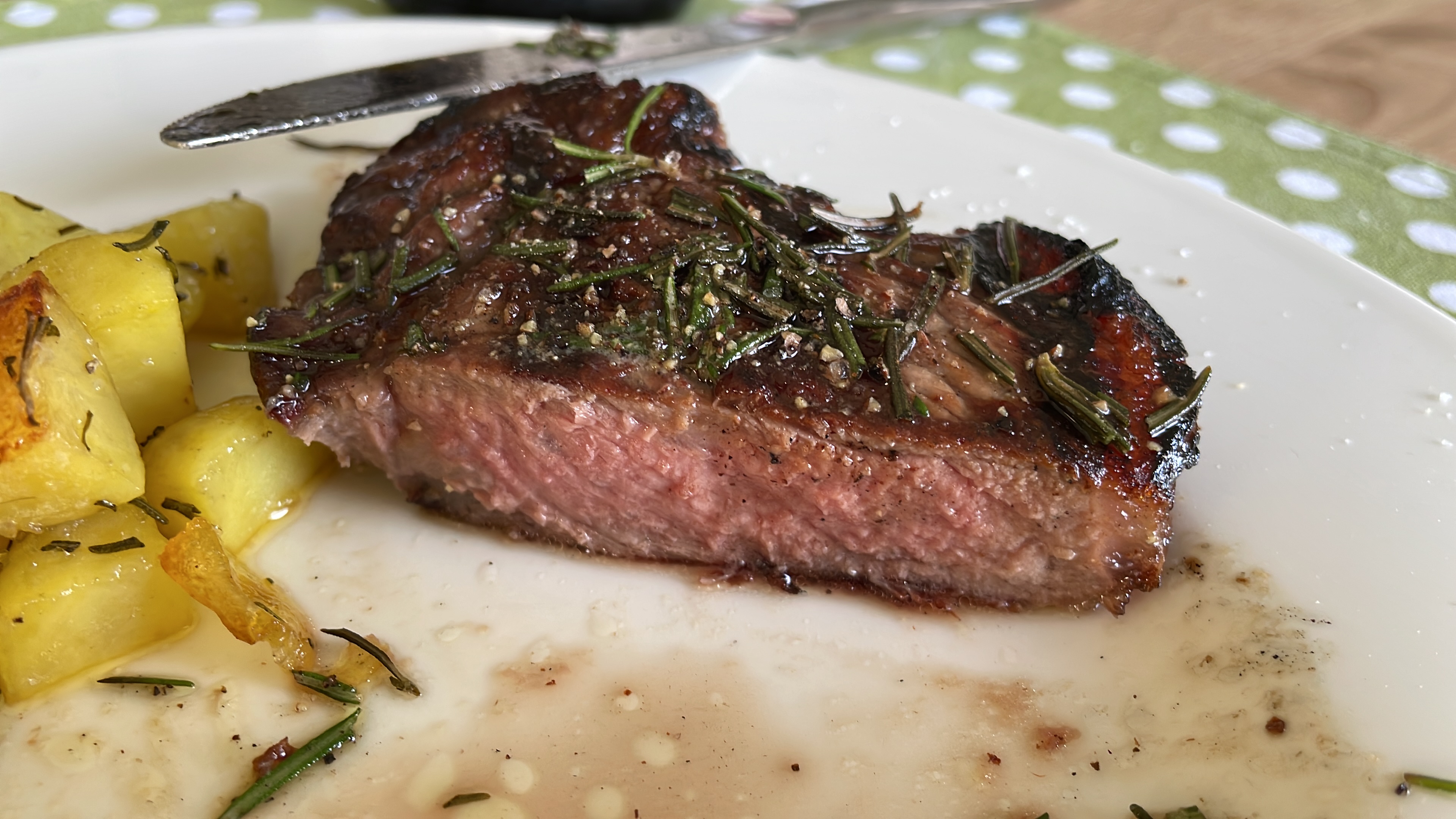 Einmal das Steak von vorgestern - ein oder 2 Minuten weniger sind nächstes mal eingeplant … aber fürs erste mal auf dem Grill zufrieden…