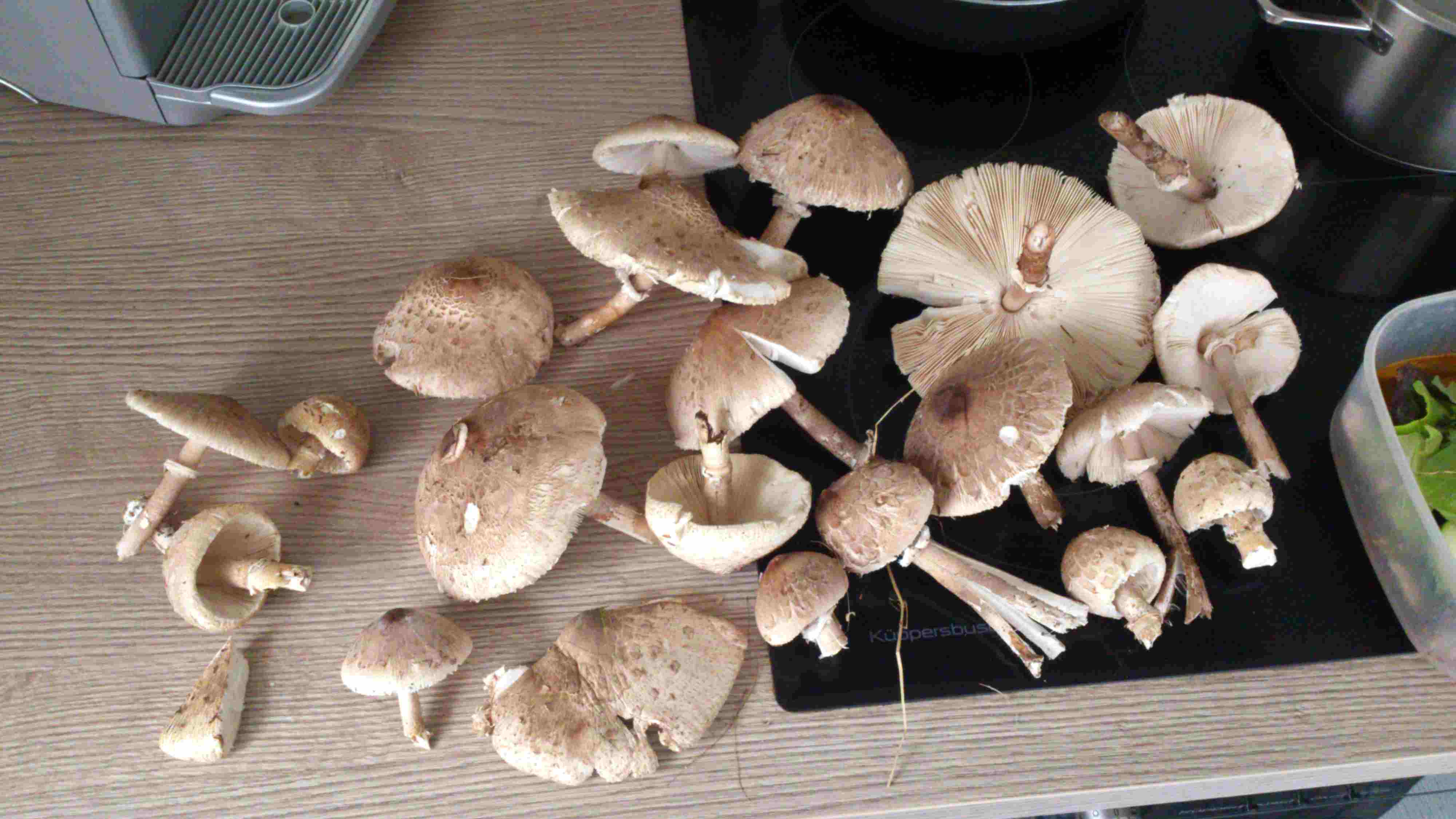 Das ist bei den Parasol-Pilz so. Da schmecken die einfach am Besten. Man kann sie auch Natur machen: Also Rapsöl erhitzen dann die Pilze mit der Lamellenseite nach unten leicht anbraten einmal kurz wenden und die Oberseite kurz warm werden lassen (nicht zuviel sonst kann die Oberfläche bitter werden).Mal abseits dessen, das ich Pilze (egal welche) überhaupt nicht mag, wieso paniert man die?