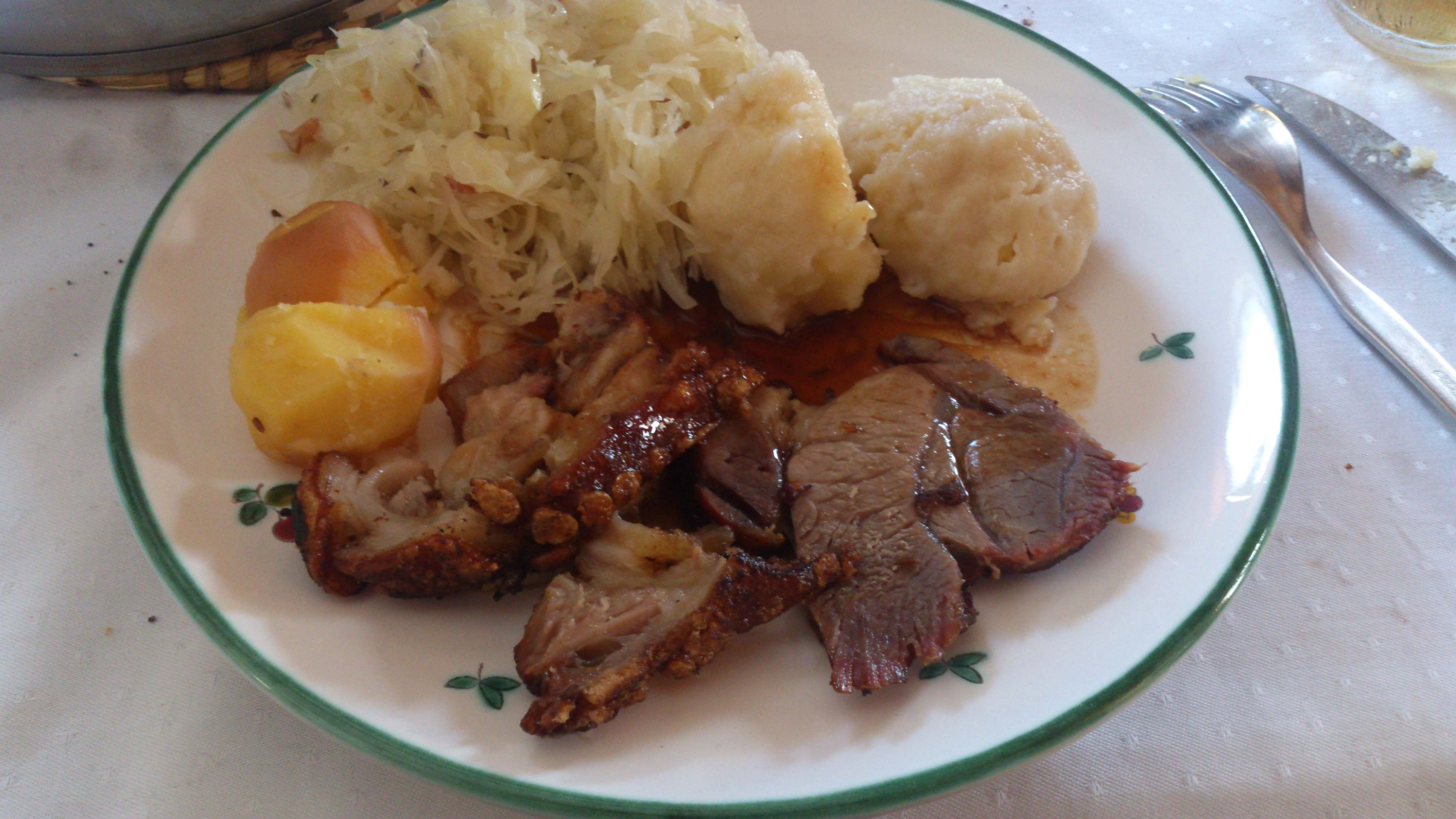 Noch ein Tellerbild mit Mehlknödel und warmen Krautsalat: