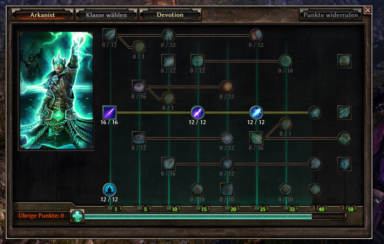 spielt hier jemand Grim Dawn? Ich habe bei "Devotion" die Schildkröte komplett geskillt, jedoch später einige Punkte bei Devotion entfernt und neu zugeordner - die Schildkröte leuchtet jedoch nach wie vor vollständig. Bei dem letzten Punkt konnte ich ja eine Fähigkeit wählen. Jetzt sind dort alle Fähigkeiten rot und nicht nutzbar. Da steht "Muss zugewiesen werden, um Erfahrung zu gewinnen". Klicke ich eine Fähigkeit an (rot, nicht auswählbar) so steht bei einer Fähigkeit immer "Fähigkeit nicht erlernt."