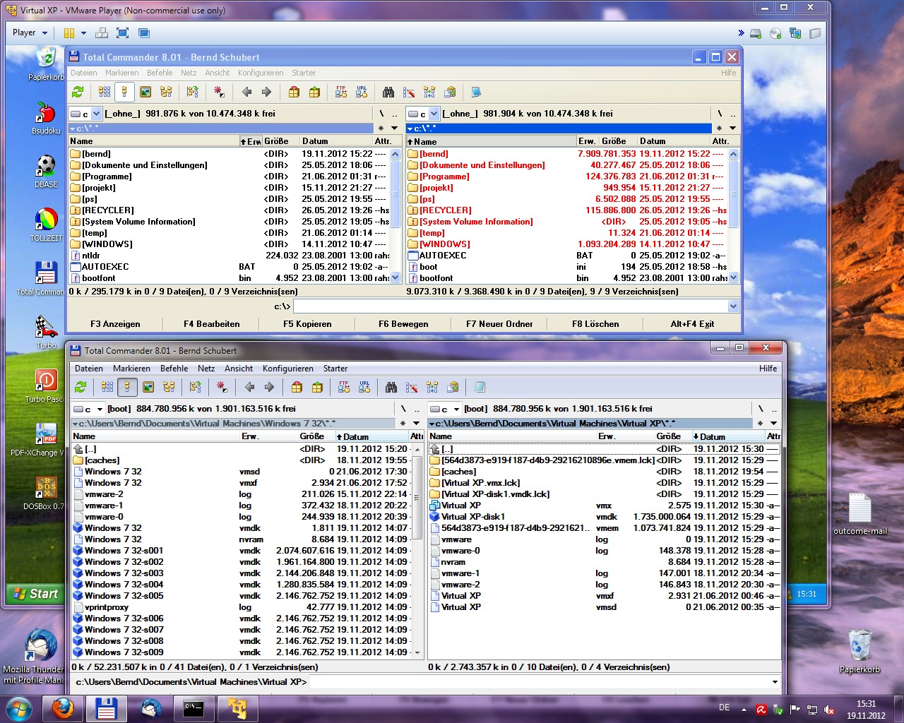 Ich nutze unter Windows 7 /64bit einen VMWARE Player Version 5, in den ich mir 3