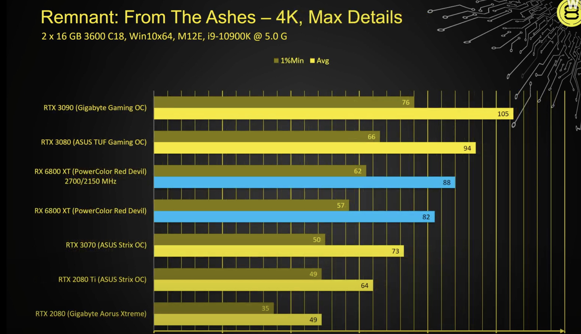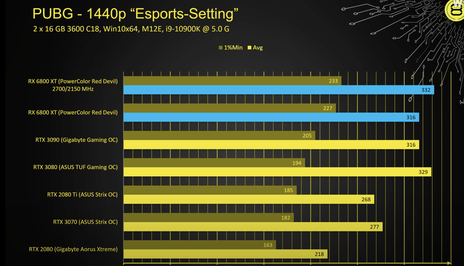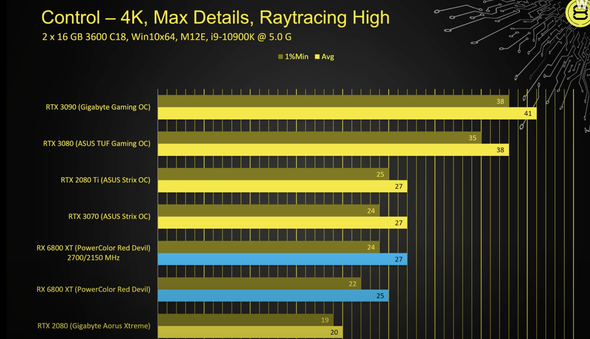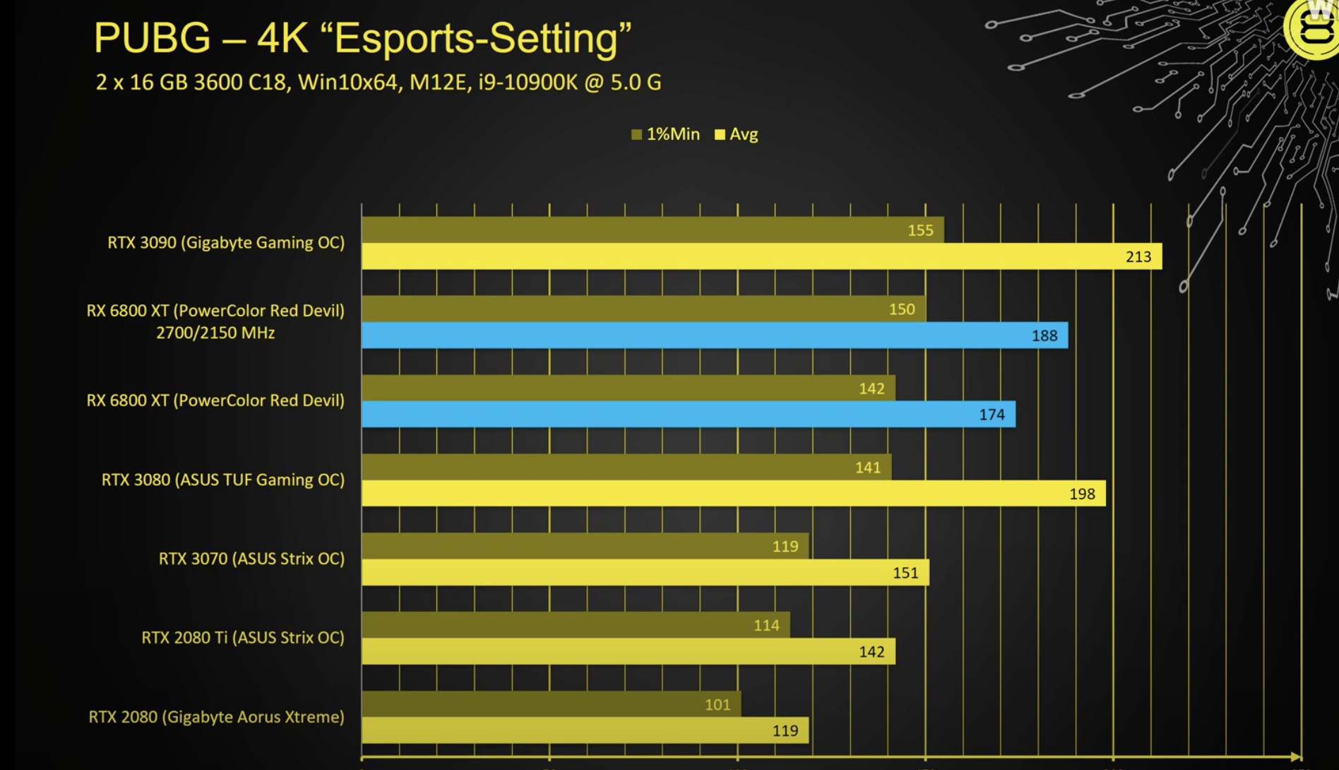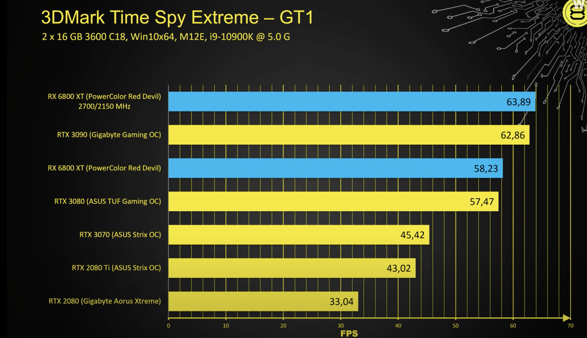 Es gibt sogar so viel OC Potential: mit OC schlägt eine RX 6800 XT eine 3090 Ti in Rasterizing.