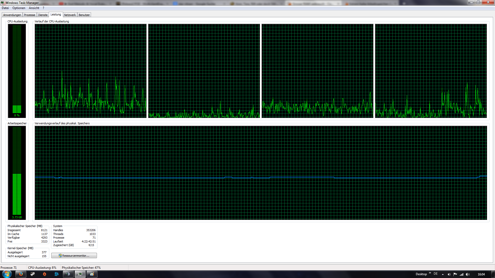 Wenn es dir "spanisch" vorkommt, guck doch im Taskmanager einfach mal nach, was da läuft. Jedes Programm, was im Autostart steckt, und sei ein auch nur ein Java Update Scheduler oder ein Musikplayer wie WinAmp oder so, verbraucht Speicher...und so kommt dann Hölzchen zu Stöckchen.