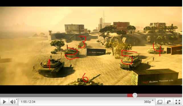 Am Ende rennen alle Zuschauer auf der Karte rum und suchen die versteckten drei Panzer