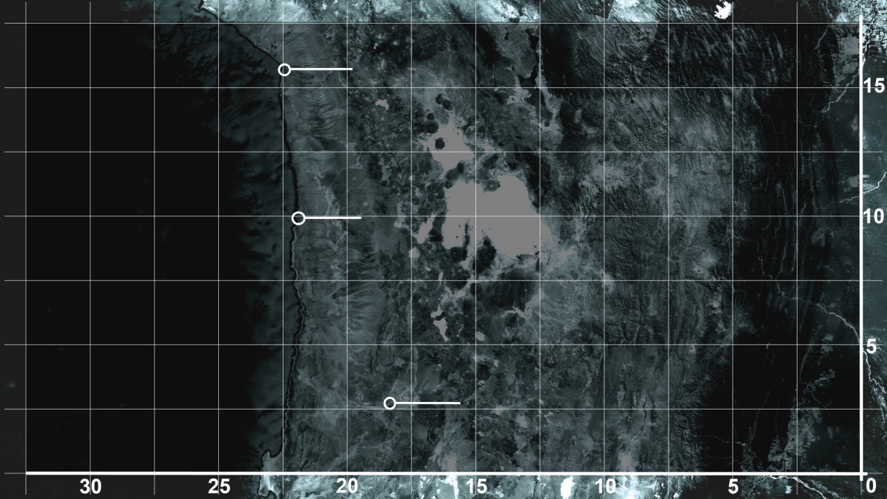 Als Erstes eine Karte vom nördlichen Bereich Chiles, wobei folgende Städte mit Punkten (und eine Linie davon ausgehend) markiert werden: Arica, Iquique, Calama. Dann den Bereich um das kleine Nest Pisagua als neue Karte und als Zielgebiet markieren. Als Anhaltspunkt siehe BF2-Intro bei rund 0:21.