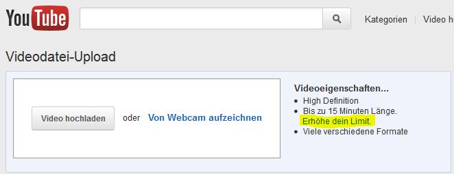Domi, was babbelst du eigentlich? Die Beschränkung bei YouTube kann man aufheben. Man braucht nur auf den Link klicken (siehe Anhang) und seine Mobilfunknummer angeben, damit Google einen Code schicken kann, mit welchem man die Sache bestätigt. Anschließend gibt es keine Längenbeschränkung mehr.