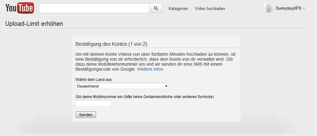 Domi, was babbelst du eigentlich? Die Beschränkung bei YouTube kann man aufheben. Man braucht nur auf den Link klicken (siehe Anhang) und seine Mobilfunknummer angeben, damit Google einen Code schicken kann, mit welchem man die Sache bestätigt. Anschließend gibt es keine Längenbeschränkung mehr