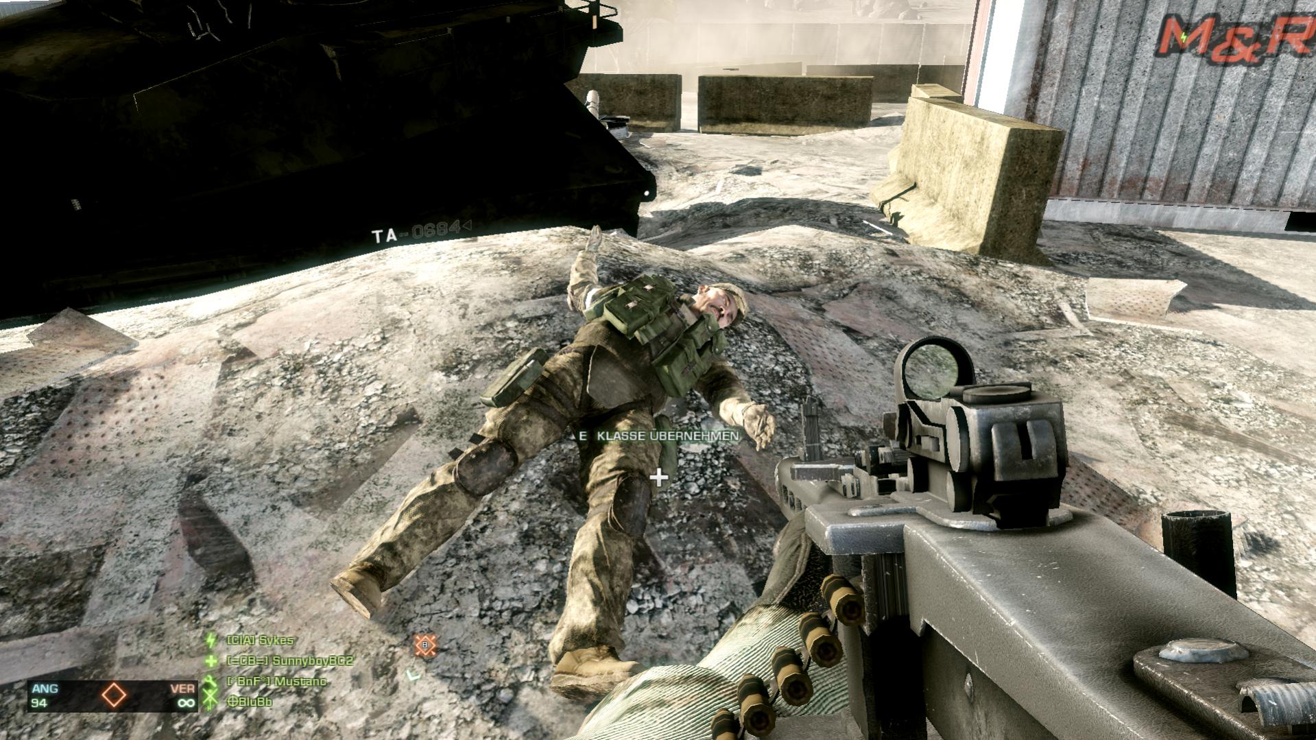 (hätte sich bestimmt auch toll gemacht, wie man aus der ego-perspektive einen der soldaten in slomo nach dem sniper-schuss beim rausrennen sieht