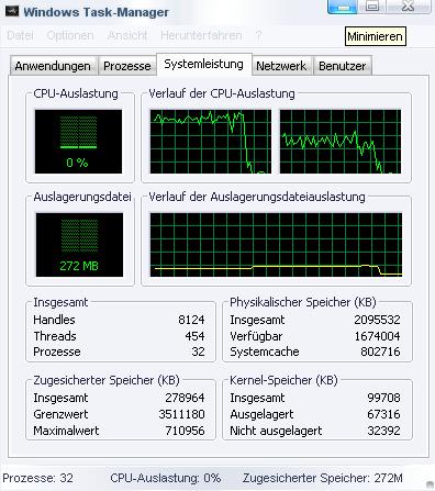 Hab mir vor kurzem mein System aufgerüstet, aber irgendwie mag das NFS Carbon nicht, denn es ruckelt nun mehr wie vorher ! Aber ich kanns mir nicht erklären warum... Auf meinem alten System lief es besser, mit der selbten Grafikkarte (A64 3700+, 2GB RAM, 7600GT PCIE) und auf dem Rechner meiner Frau läuft es in maximum Details tadellos.(Pentium D 940, 1GB DDR2, X800XL PCIE). Aber nun auf dem Core2... so halbwegs spielbar (max. 20FPS) ist es in 1024x768 ohne FSAA und ohne Motion Blur und das schaut auf nem 19" TFT nicht gerade toll aus... Wie gesagt, auf dem alten System lief es in 1024x768 mit FSAA und Motion Blur tadellos, selbst wenn ich die 7600GT auf 600Core und 800Mem takte, wirds nix. Hier mal menie genaue Systemconfig, vielleicht hat ja jemand ne Idee :-/