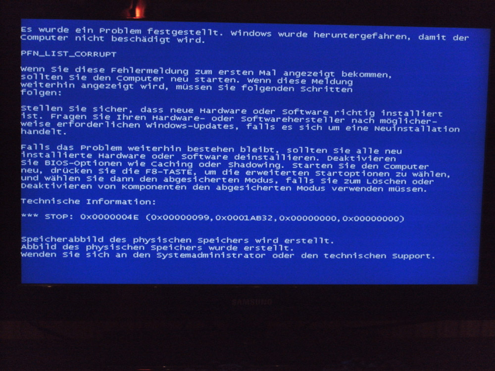 ich installierte ihm reitzmann xp drauf,der pc lief 2 wochen problemlos, bis sein firefox von 3.0.9 auf 3.0.10 updatete, von da an begannen die Probleme, erst stürzte Firefox ständig ab mit einer Fehlermeldung die man an das Mozilla Team einsenden konnte, als man dann Internet-Explorer benutzte, stürzte dieser auch nach kurzer Zeit ab. Dann fingen Programme an abzustürzen und dann kamen schon die Bluescreens. Der pc hat 2 Partitionen, eine ca. 15gb für windows und co. der rest für musik bilder und filme. Wir haben den PC formatiert und windows versucht draufzuspielen, aber beim installieren stürzt der PC mit einem bluescreen bei immer derselben stelle ab siehe screenshot 1 https://www.computerbase.de/forum/attachments/xp-jpg.139206/