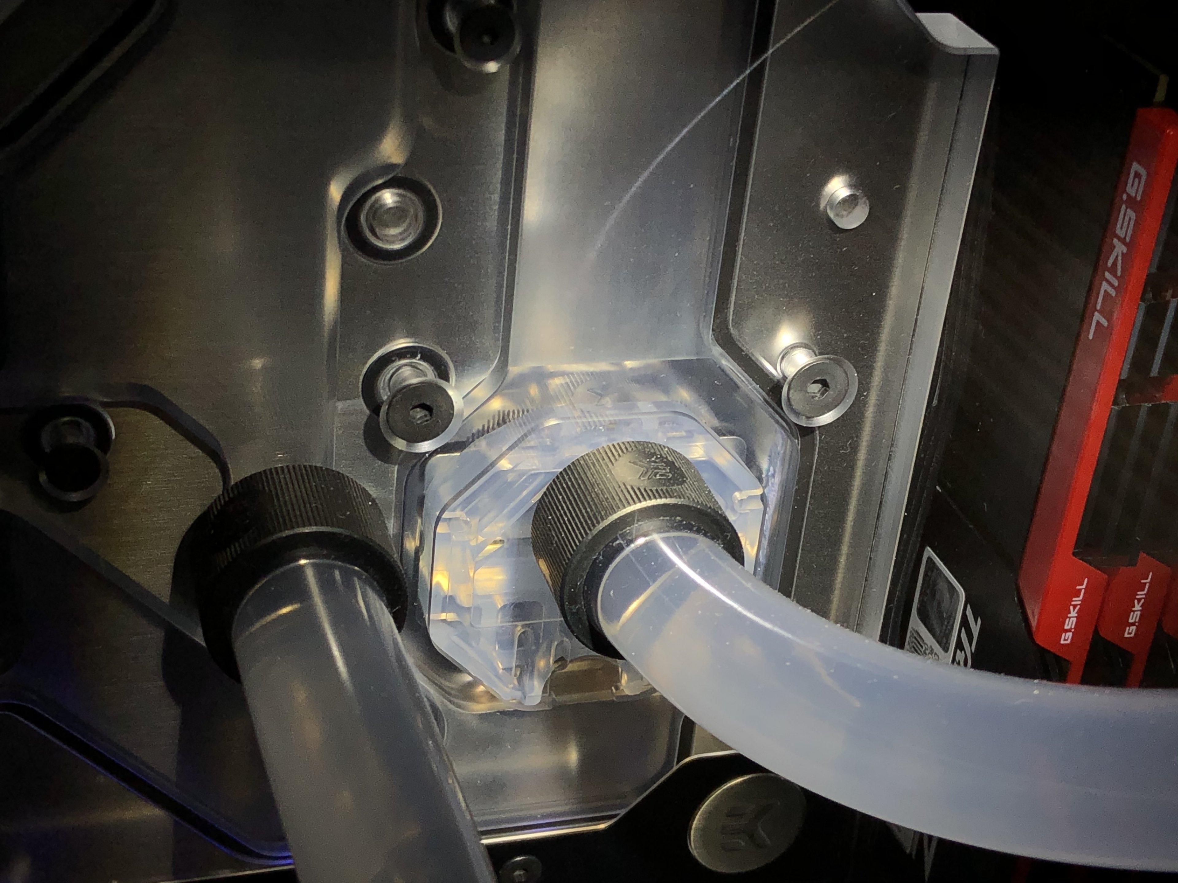 Da ist EKWB Cryofuel drin, farblos. Ich hab mir schon gedacht, dass das irgendwie “milchig“ wird. Dann sah ich diese Ablagerungen.